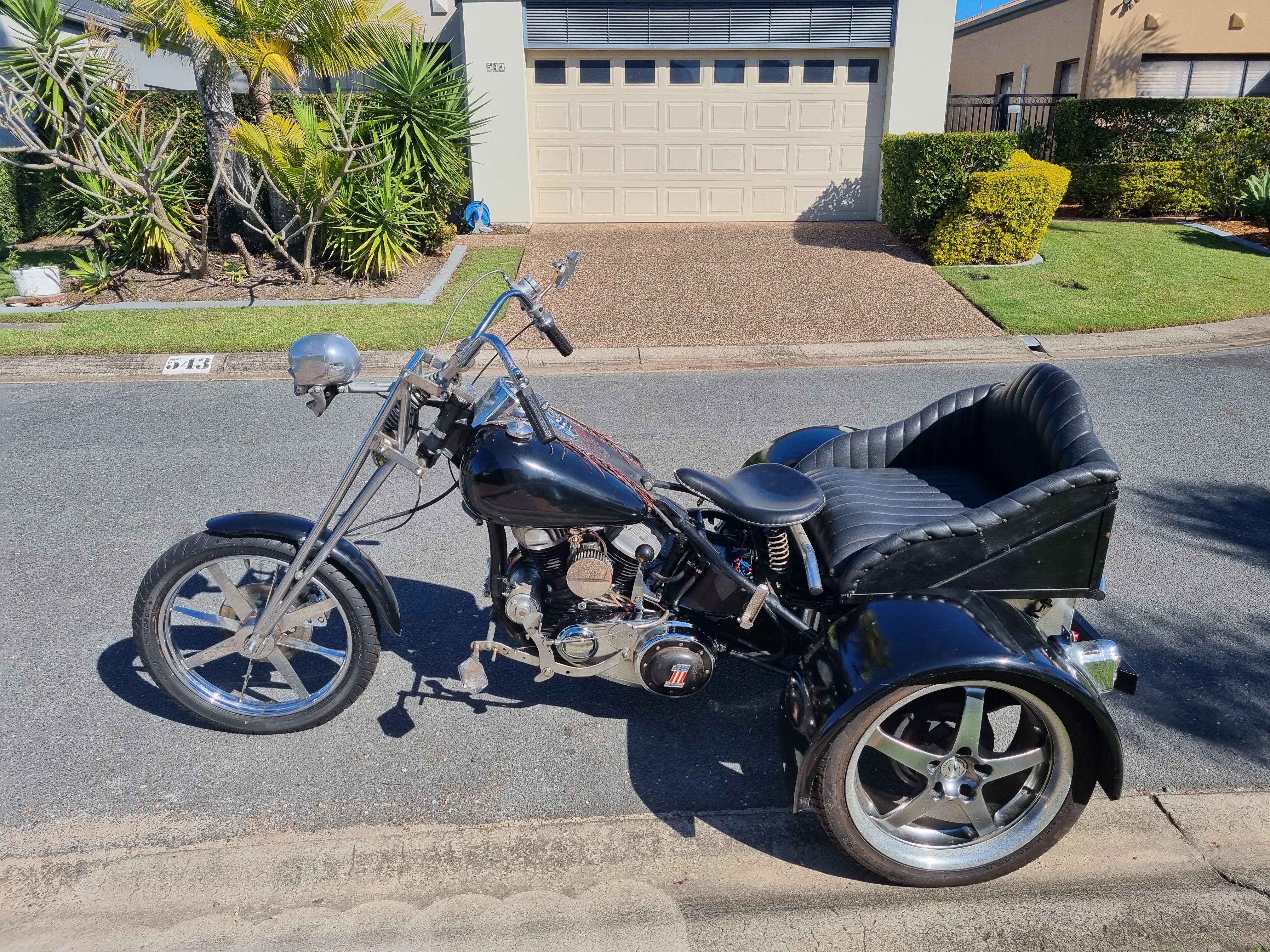 Custom servicar with several modifications which include. Extended front forks, 10 gallon fuel capacity, new keihin 600 carby, fully rebuilt motor and gear box, 3 speed plus reverse. 1965 motor, 18X8 Rodney Jane rear wheels, suicide clutch and jockey shift. 1952 diff with hydraulic brakes, pillion seat and foot pegs.