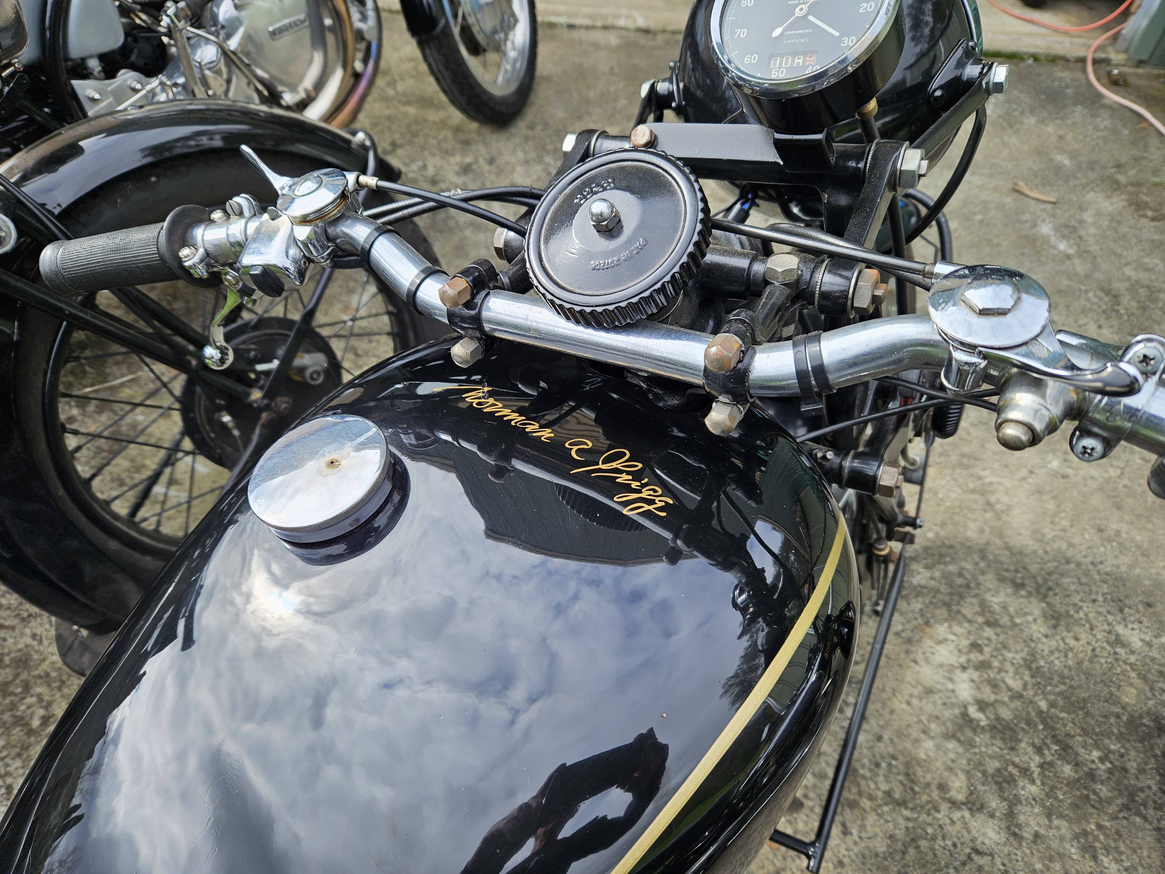 Norm's exceptional unrestored condition KSS. Norm fitted a pre 33 Amal (Brass) don't see these carbs often. Matching numbers bike. Originally out of Melbourne. With record. Also have a 1939 MSS available $15K Best of the girder bikes.