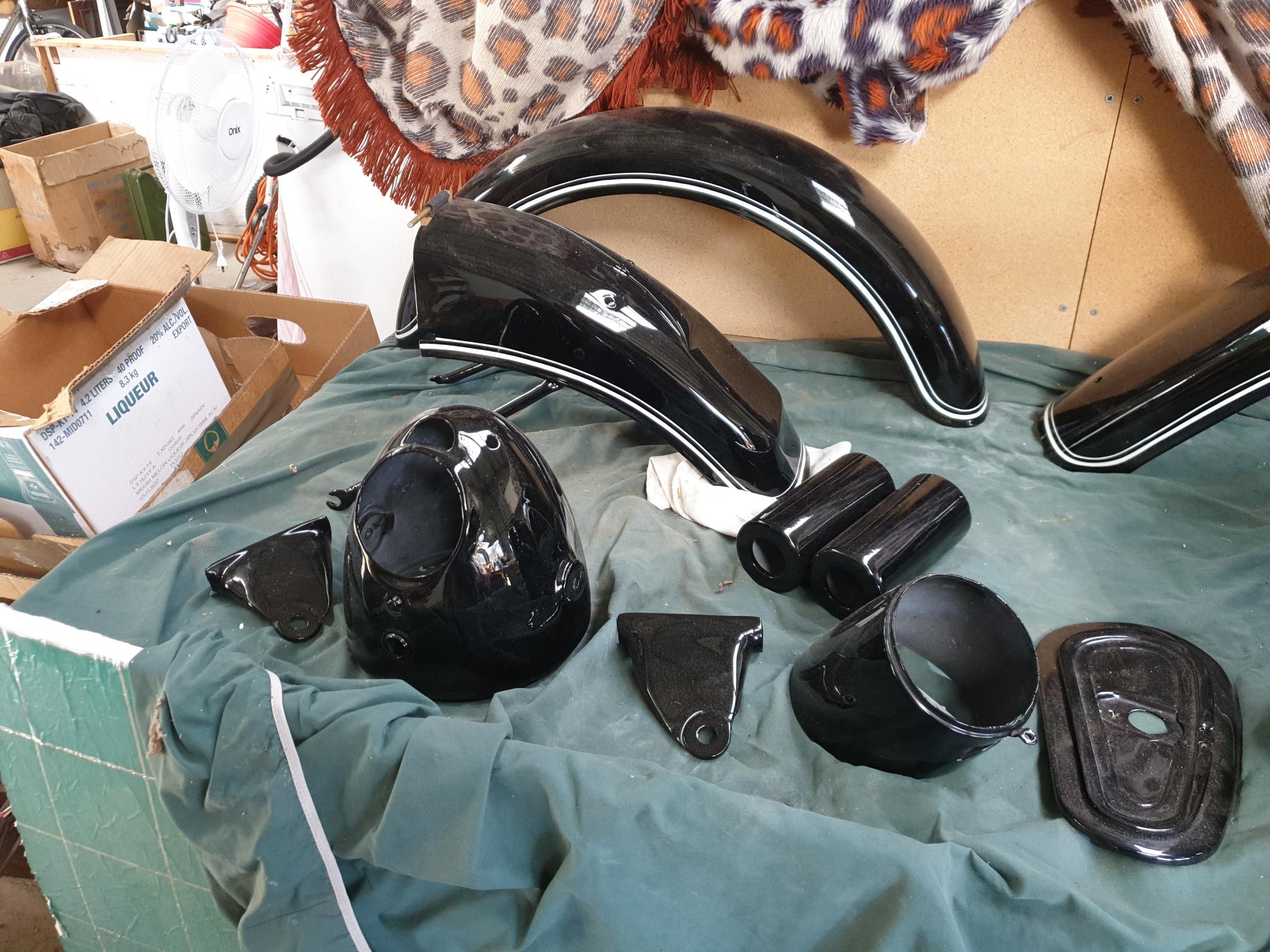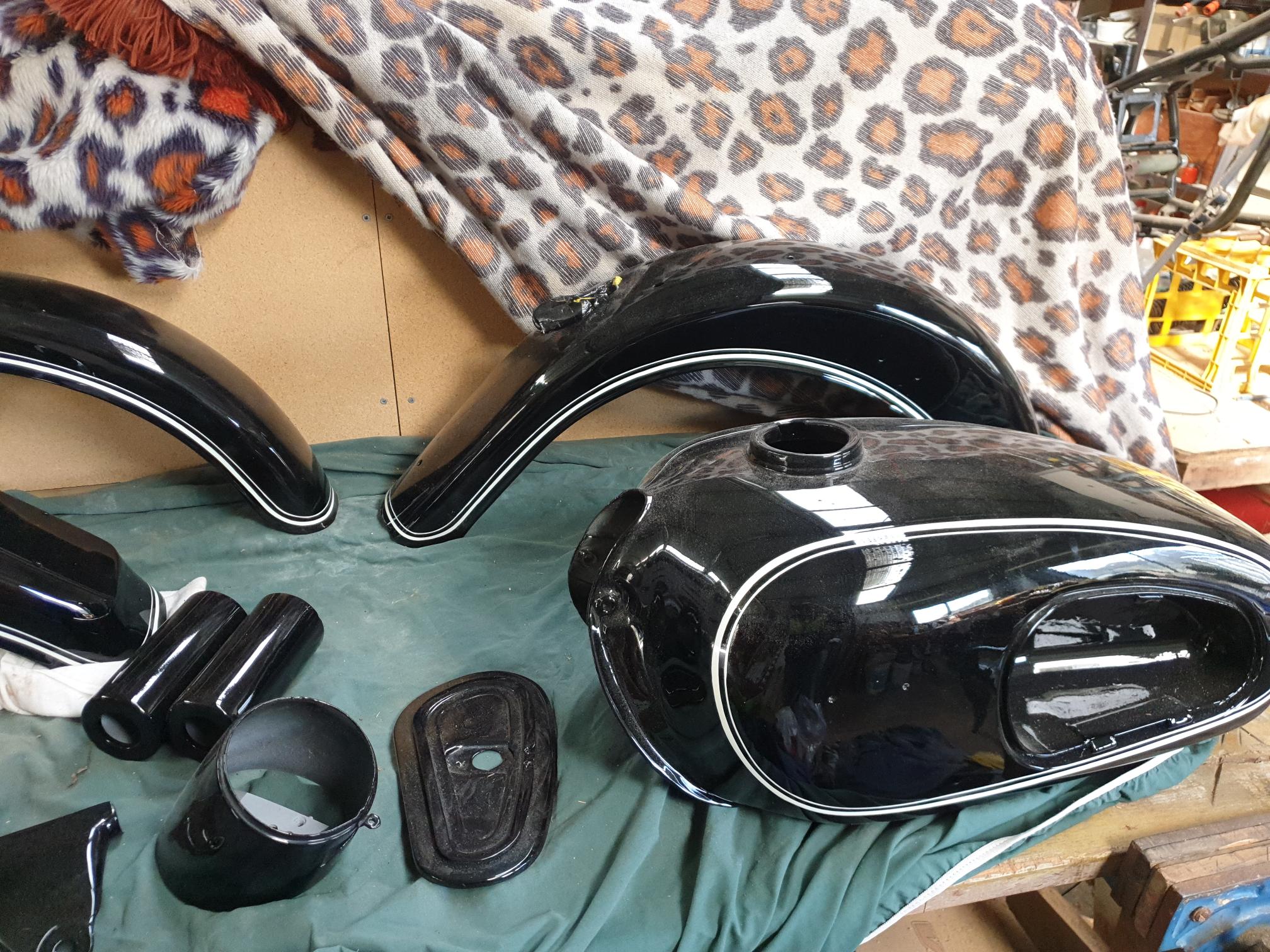 This bike is ready to re-assemble, any photos required can be sent. Bottom end of engine and gearbox rebuilt, new clutch. Alloy wheels re rolled and stainless spokes fitted. New original shocker inserts. All tinware professionally painted and pinstriped. Double seat professionally restored. New pipes. Plenty of spares. New pistons, conrods, bearings valves.