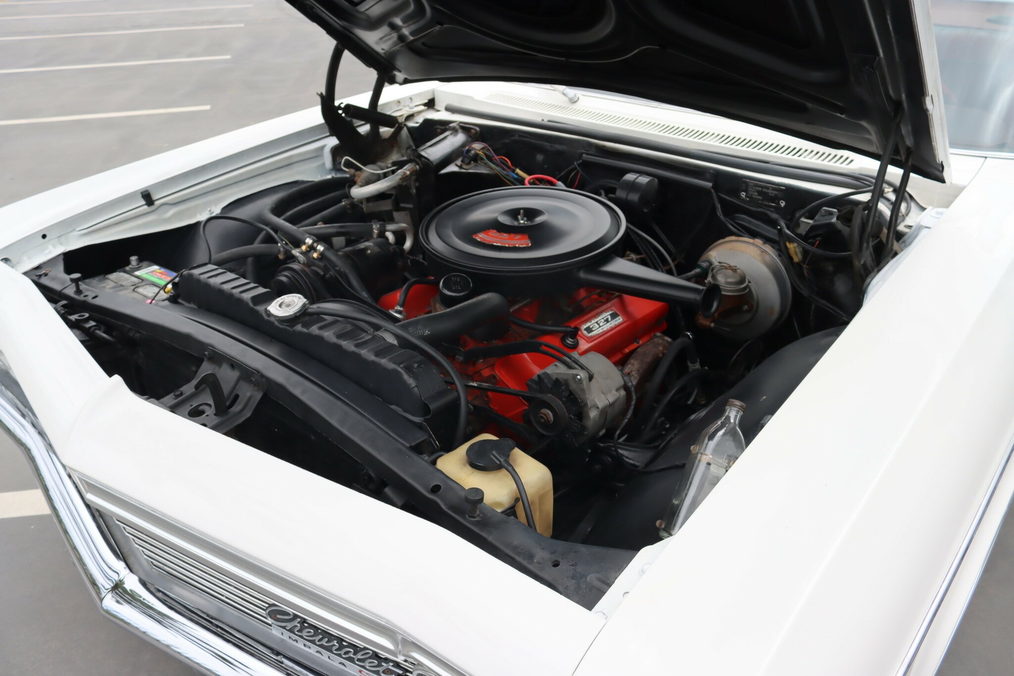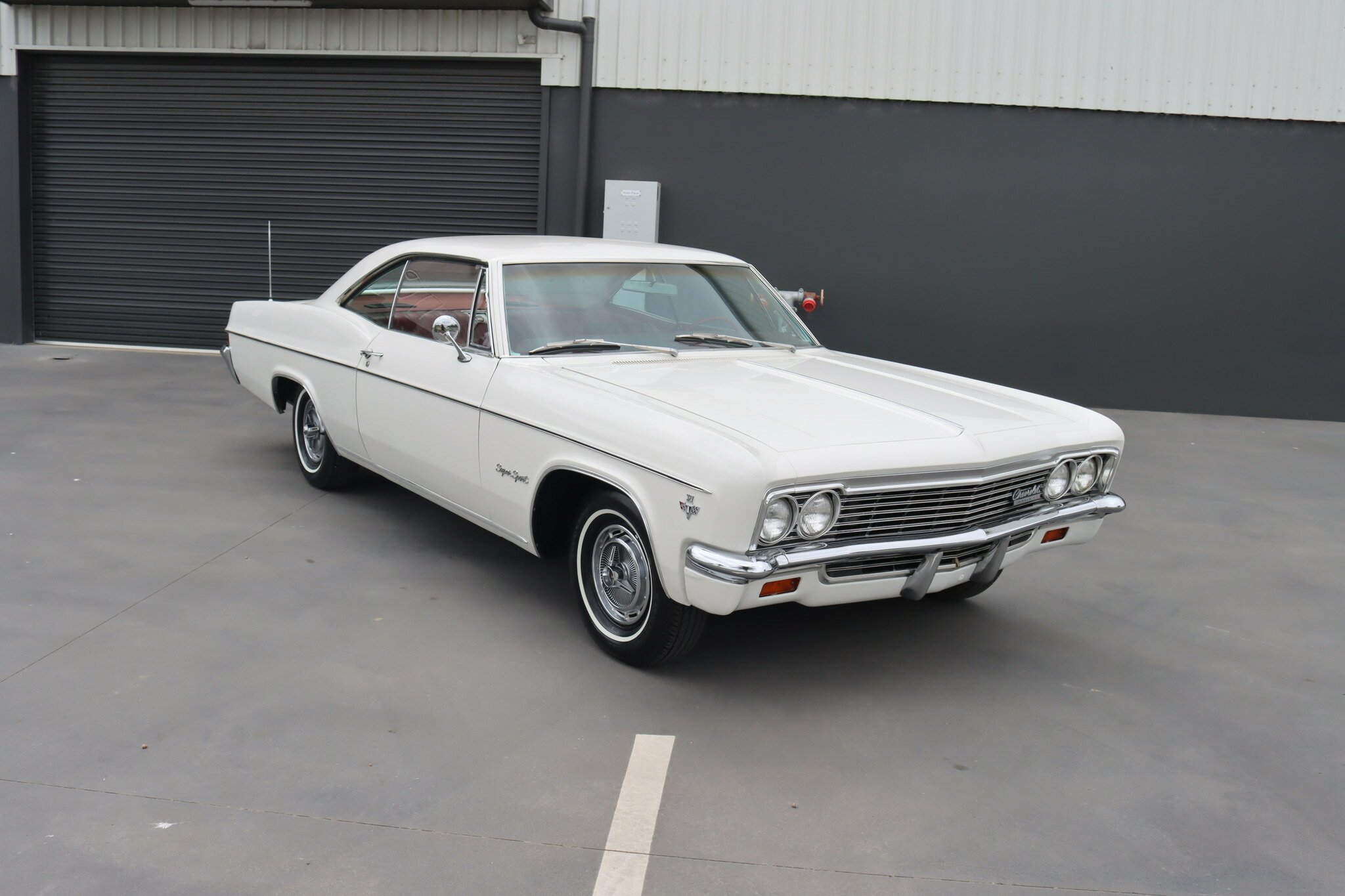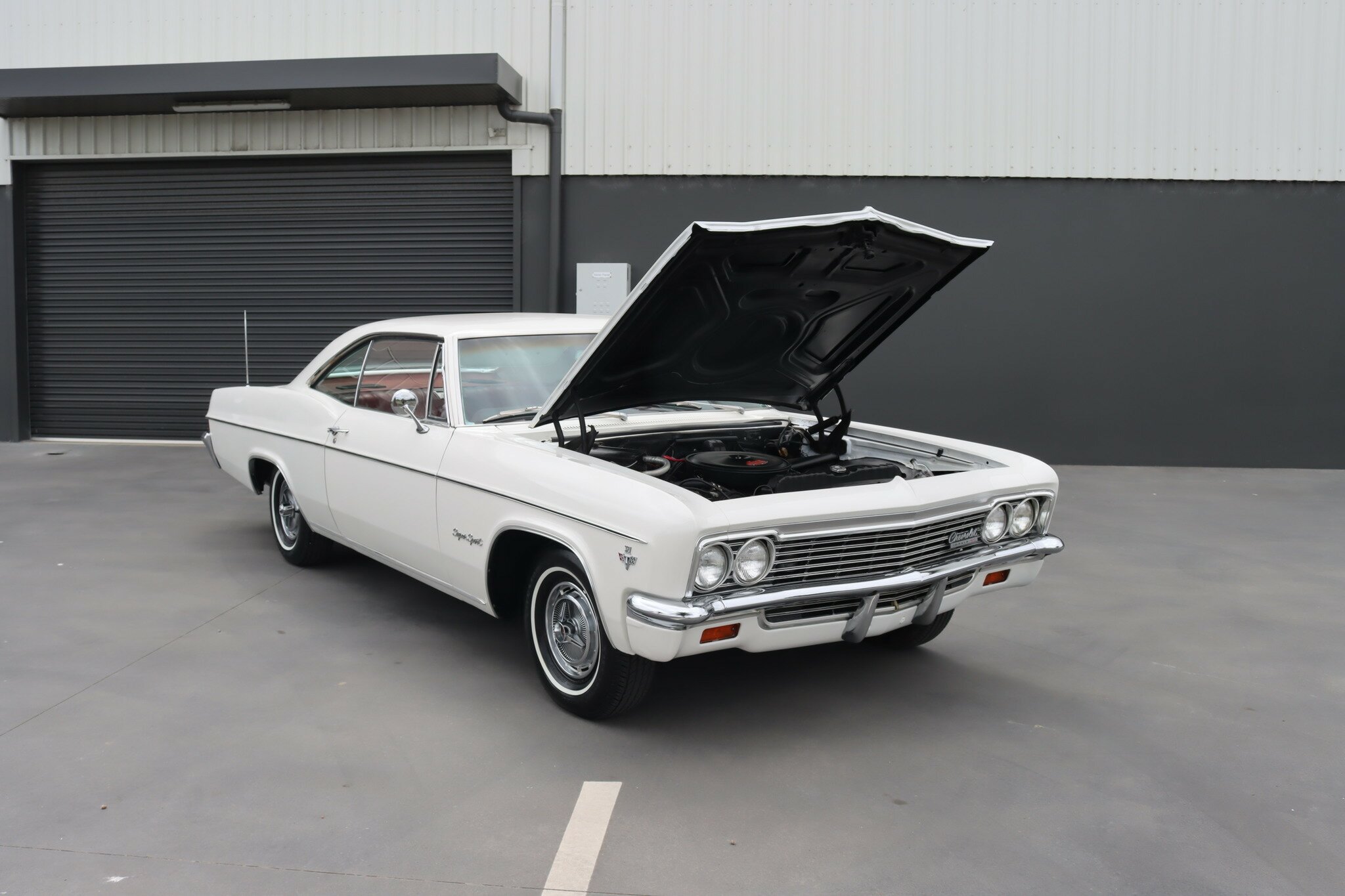 This is a very nice, genuine Chevrolet Impala SS presented in good quality Ermine White. Interior is Red vinyl bucket seating with centre console and Red carpet, all in good condition. Running the 327ci V8 through a 2 speed powerglide transmission with floor mounted T-Bar selector. Options include, Factory Air-Conditioning, Power assisted steering and brakes. Odometer shows 93,518 miles. This car runs and drives well.