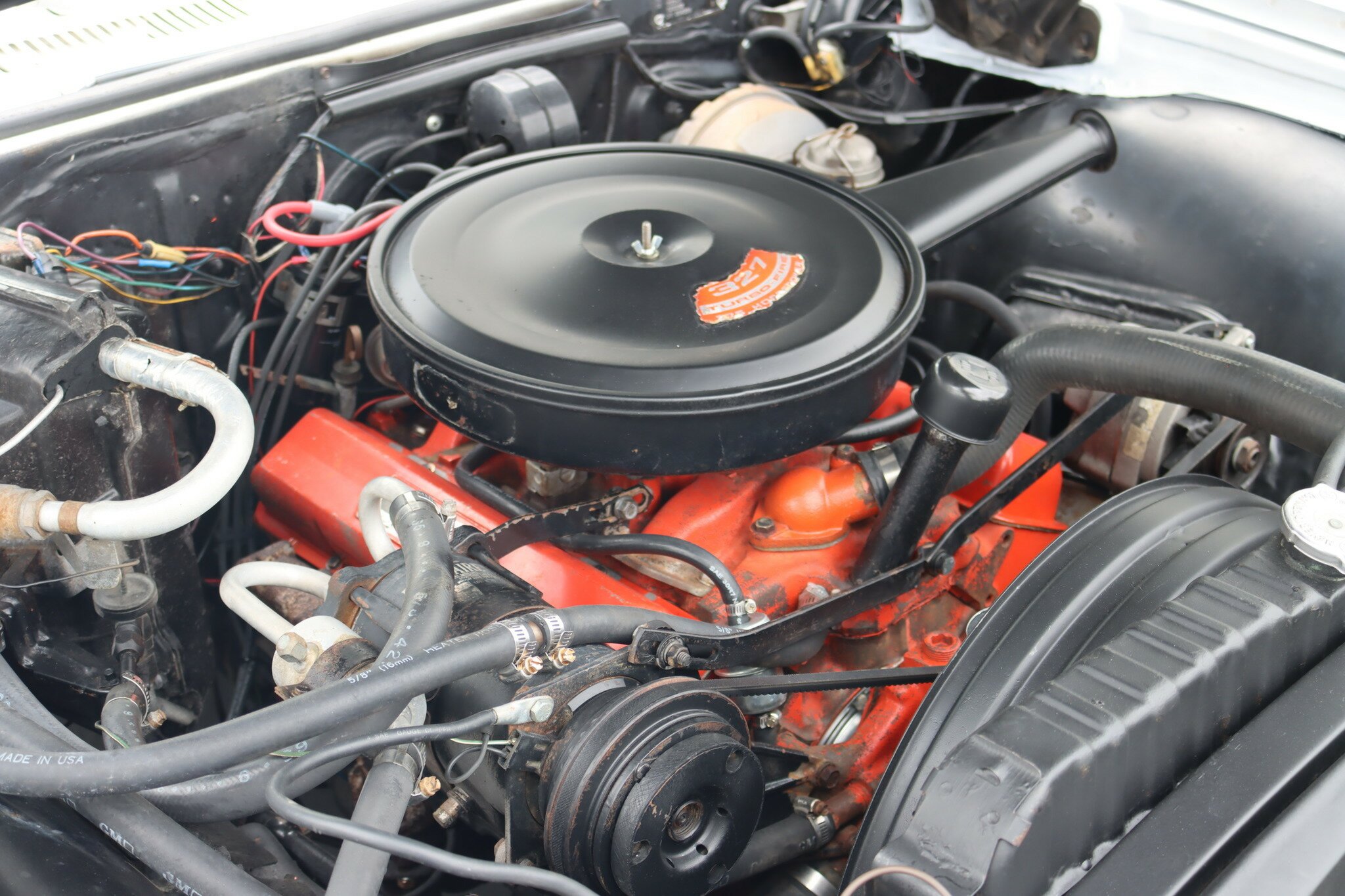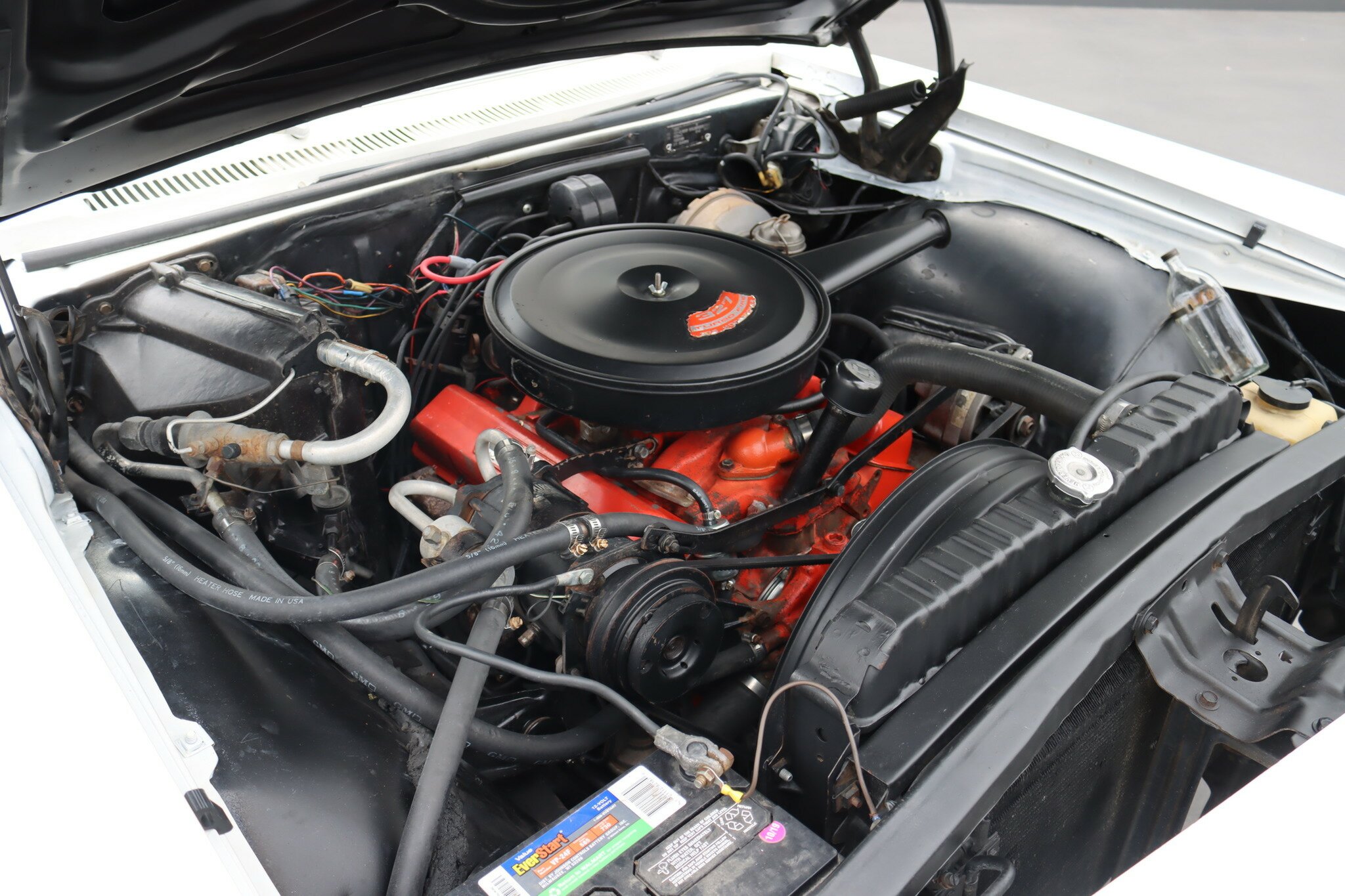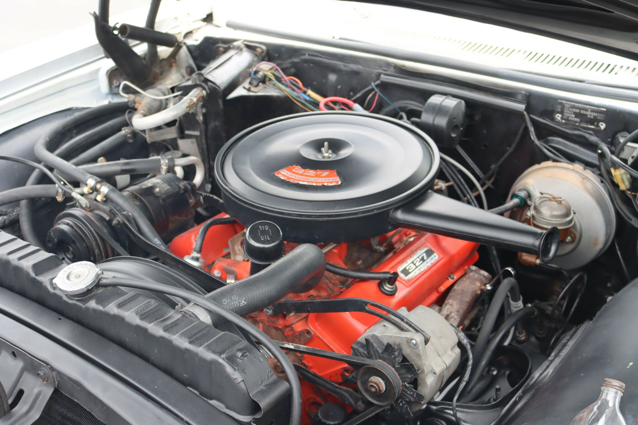 This is a very nice, genuine Chevrolet Impala SS presented in good quality Ermine White. Interior is Red vinyl bucket seating with centre console and Red carpet, all in good condition. Running the 327ci V8 through a 2 speed powerglide transmission with floor mounted T-Bar selector. Options include, Factory Air-Conditioning, Power assisted steering and brakes. Odometer shows 93,518 miles. This car runs and drives well.