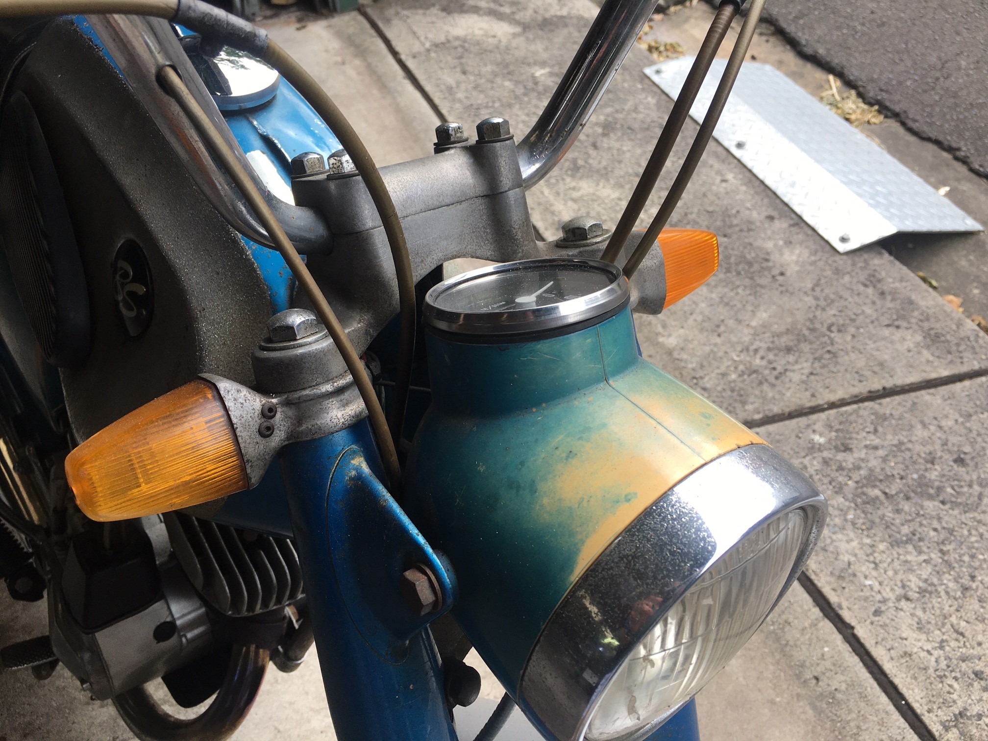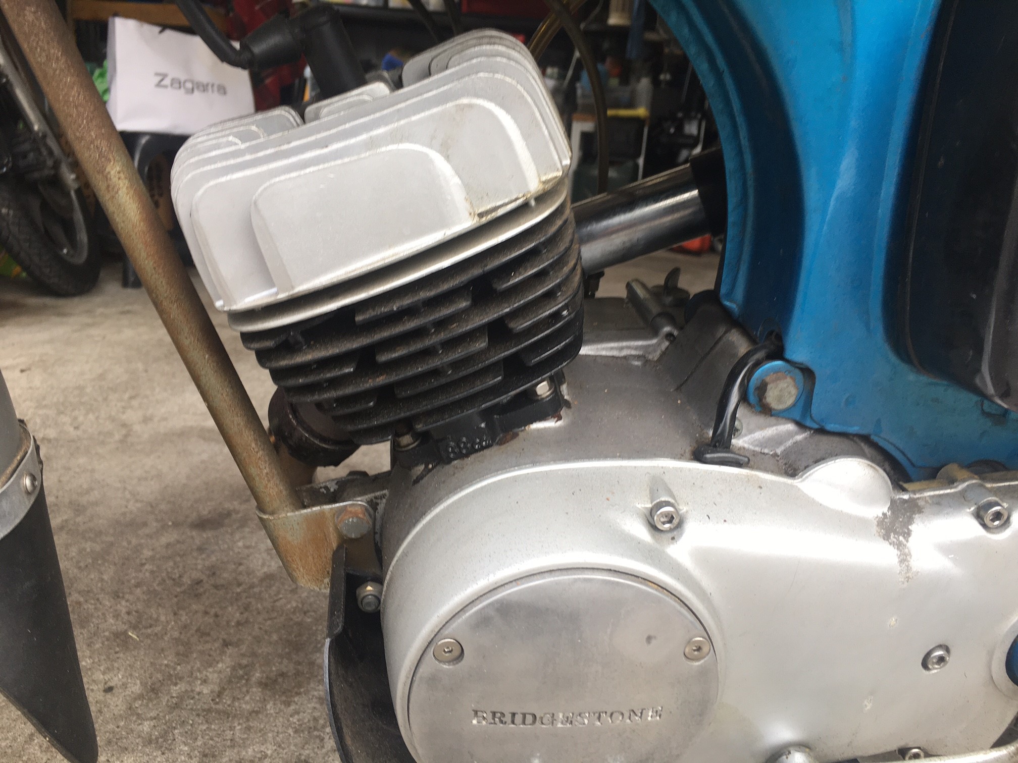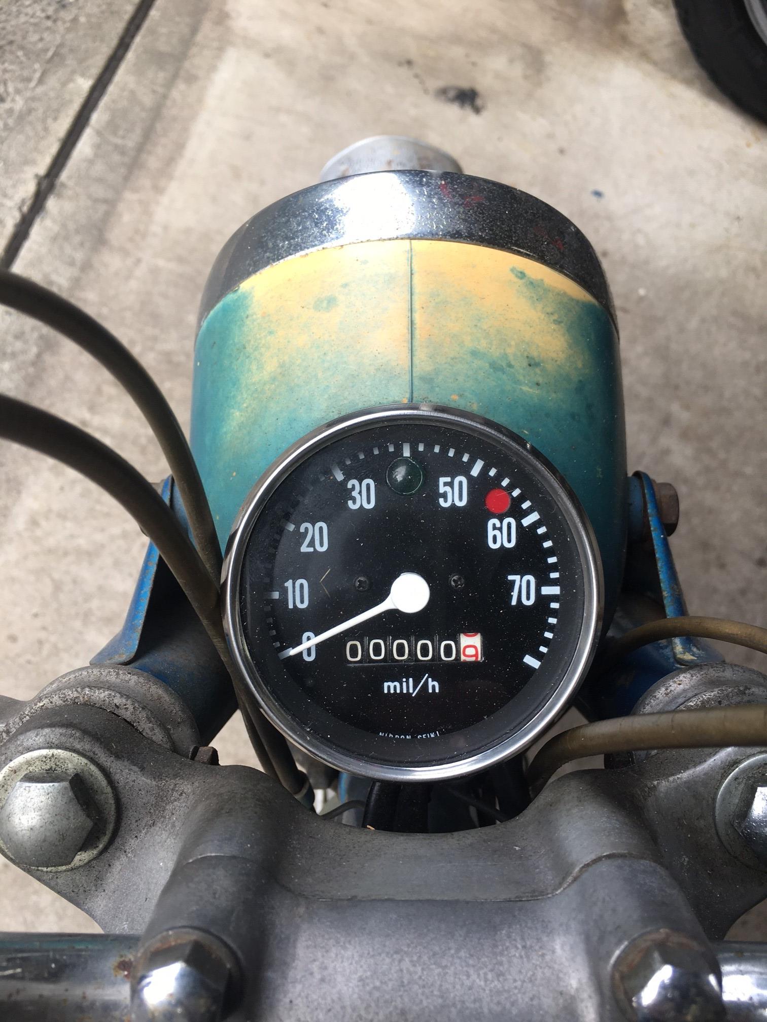 Need some space in the garage for a new bike so the little Bridgstone has to go. It's 'original and unrestored' condition. I have replaced the speedo with a new NOS one, new NOS muffler all the oil seals were replaced including the crank seals, new piston and rings (it's only done about 5,000 miles but I replaced it as I wanted to paint the head and barrel) and new rubber foot pegs etc. Starts first or second kick every time. Only use it on the DGR or a quick spin up the shops. It's on club plates (not transferable). Has a 6v lithium battery.
