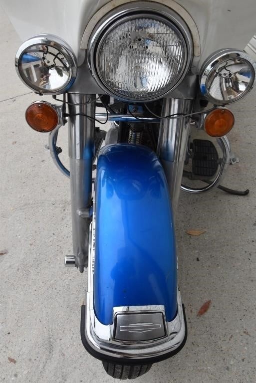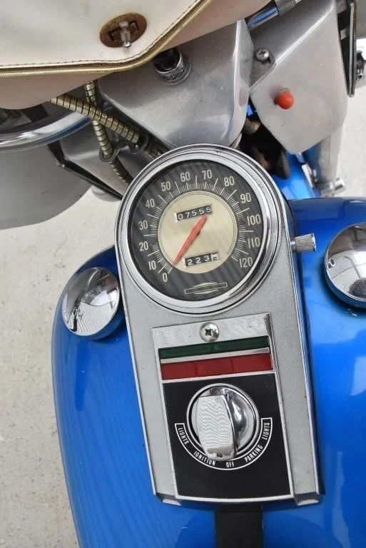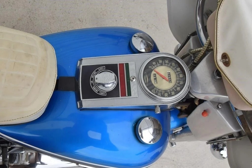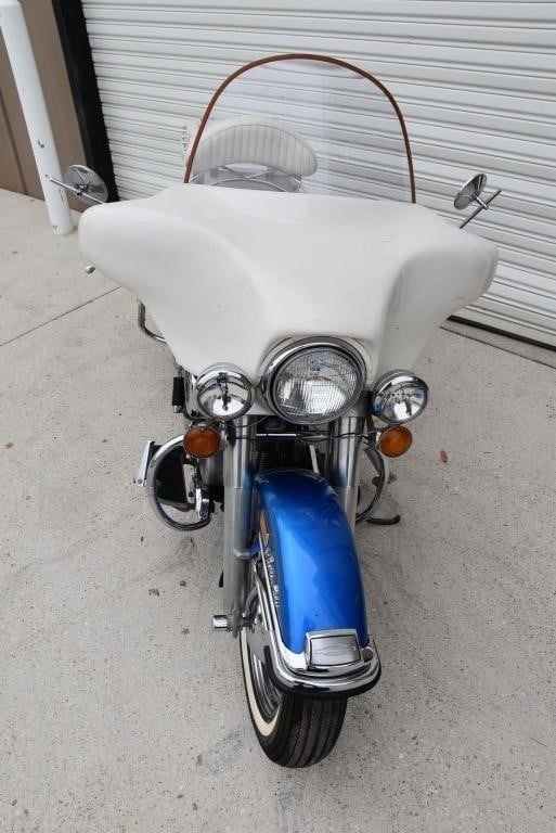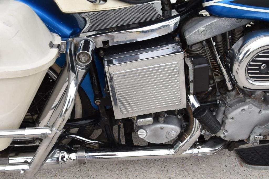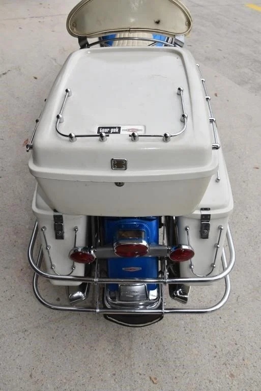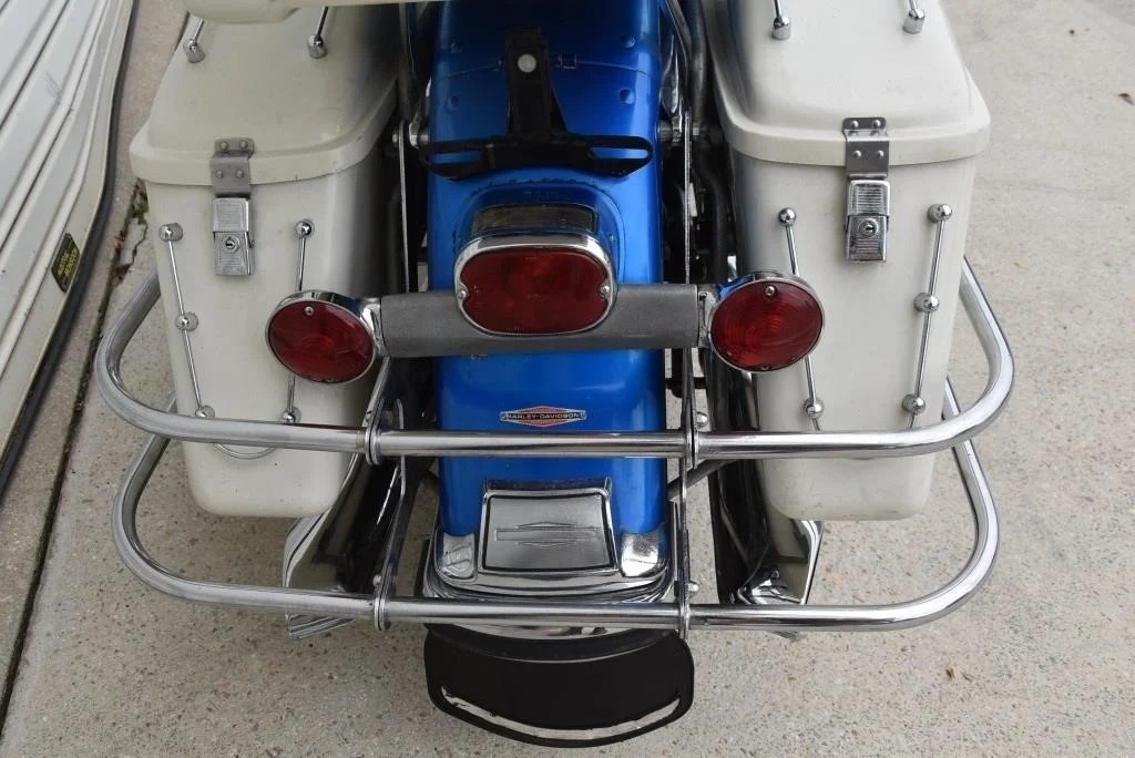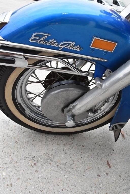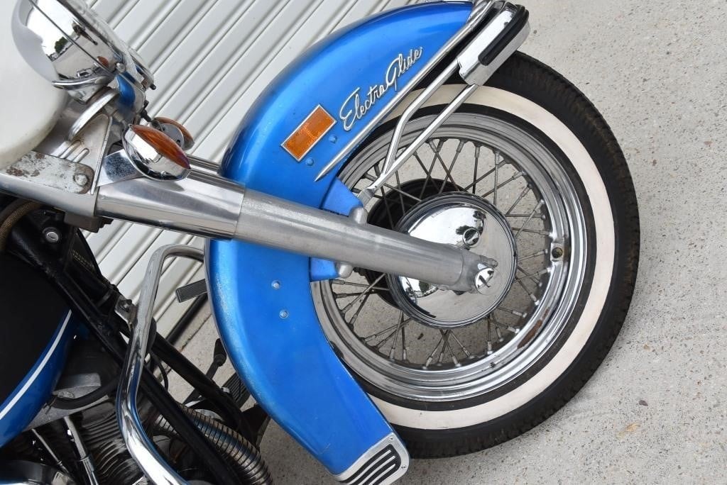 Harley Davidson 1968 FLH Electra glide Original Sparkling Blue paint and just over 7,500 miles only. This has the all new Shovelhead parts that characterised Harley styling into the '70s including cast dash, alloy oil pump, etc. This beautiful example was sold out of the renowned Egeberg Brothers HD dealership in Minneapolis (dealer tag on rear fender) and was bought from a friend of the original owner. Nut and bolt perfect! Please note that the lot number for this bike will change during October when the bikes are placed throughout the auction catalogue. #Lot 430
