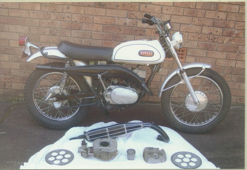 YAMAHA DT1 250cc, 1968. With tuning kit (fitted), 100% original, low mileage, original tyres, new battery, chrome good, no dings, collector's dream, stored last 10 years.