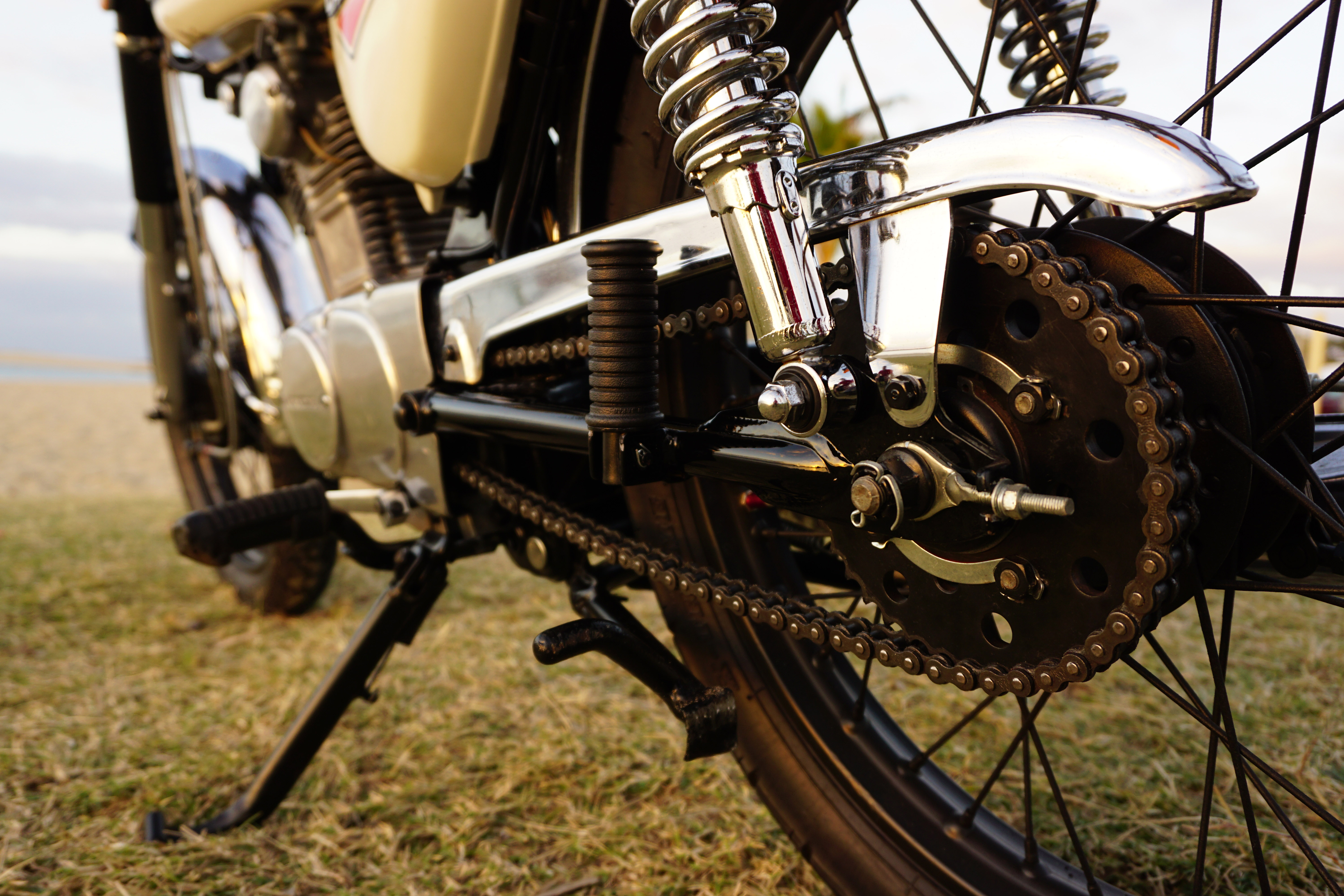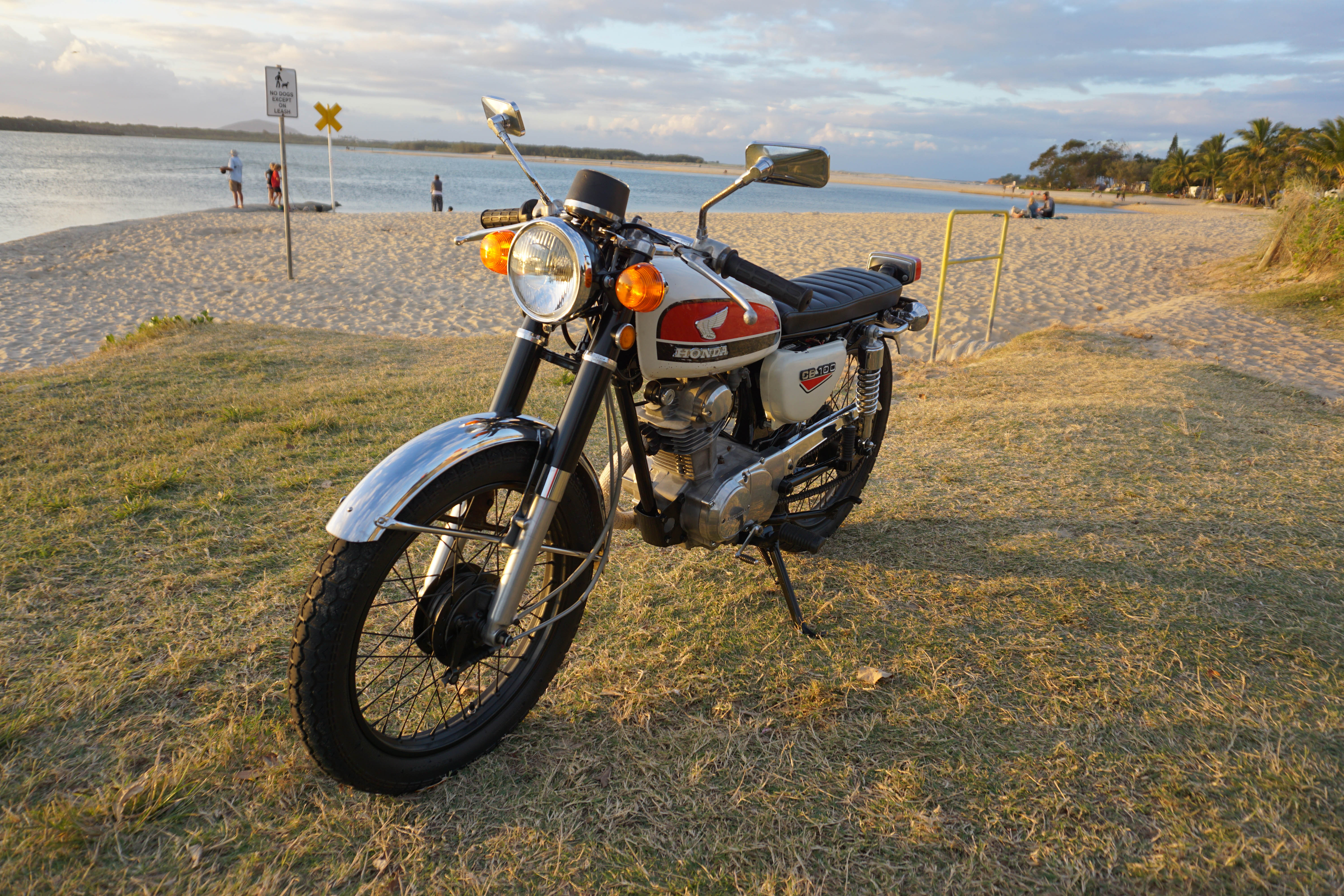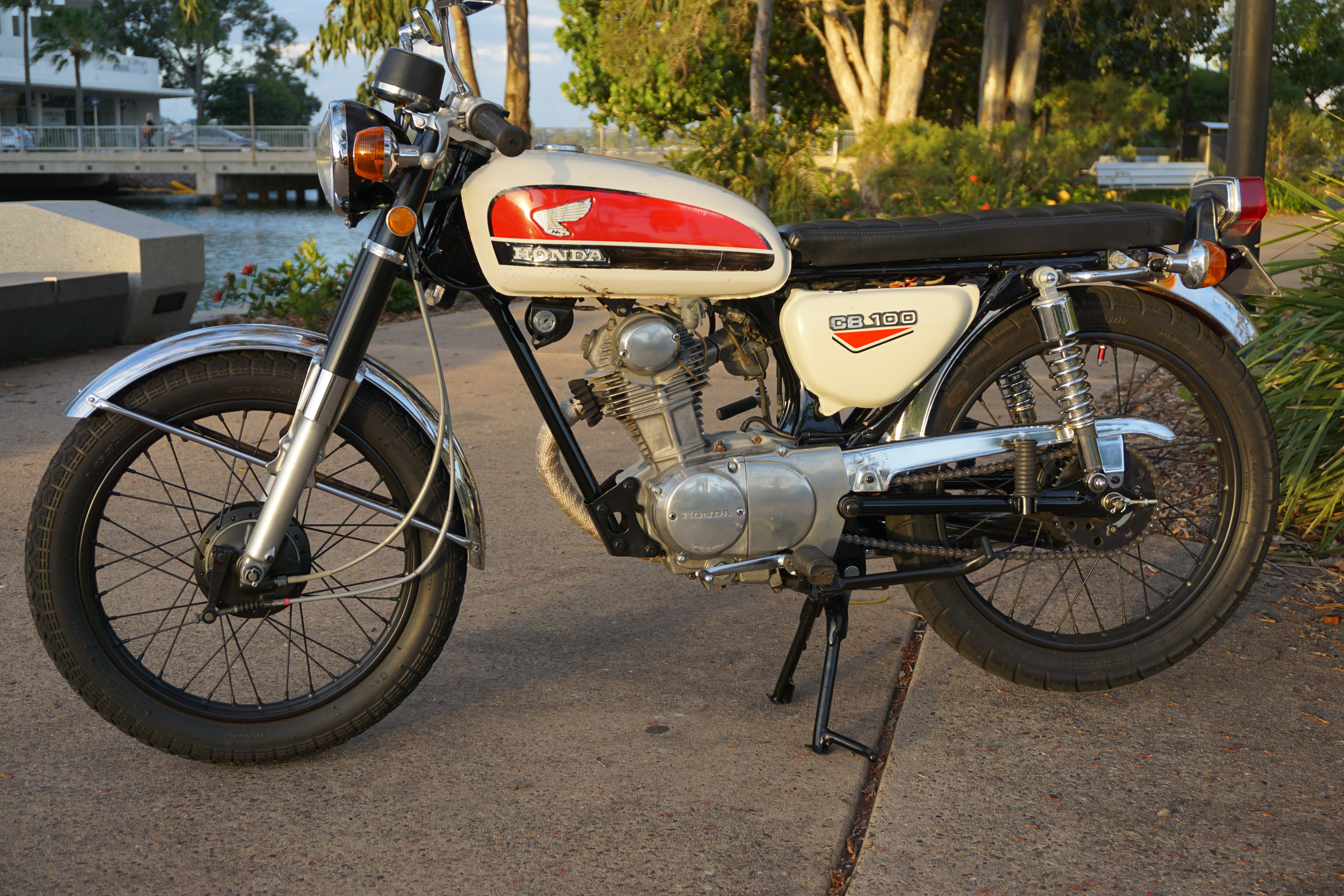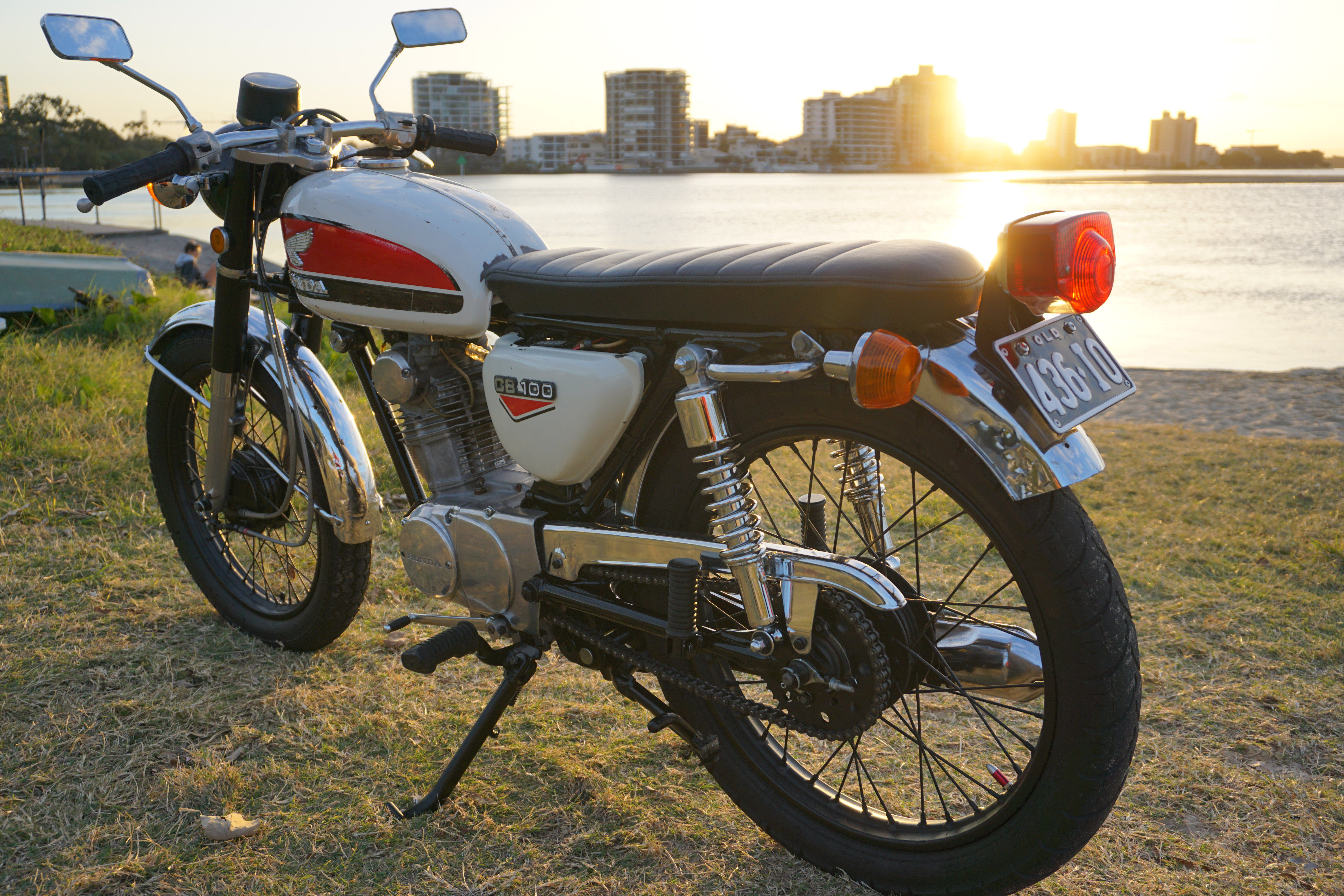 For sale is a great little bike that I have owned and restored over the last 6 years. Its a fun and reliable ride that I use to cruise to the shops, cafe or beach. I've got a second bike now that I'm riding more so have decided to move the CB 100 on. I've spent a lot of time and money restoring it and have listed some of the new parts I've replaced here, and I have receipts to support: Carbie kit, sealed AGM battery, condenser, points, spark plug and cap, a number of motor seals (no leaks), clutch cable, speedo cable, front brake cable, throttle cable, brake and clutch leavers, chain, front and rear sprocket, fuel tank and seat rubbers/cushions, side cover mounting rubbers, kick start and gear change rubbers, head light, wheels trued and balanced, rim tape and tubes, front and rear wheel bearings, brake pads, swing arm bushes, headset bearings up graded to taper roller bearings, rear shocks, front fork seals and oil, custom seat, frame professionally sand blasted and painted in 2 pack, lots of other bits powder coated. The front and rear tyre have plenty of rubber left. It has spare keys including the original. Regularly serviced including fuel filters and oil change. Selling registered (Expires August) with roadworthy Comes wtih the original bars so you can take it back to original if you like