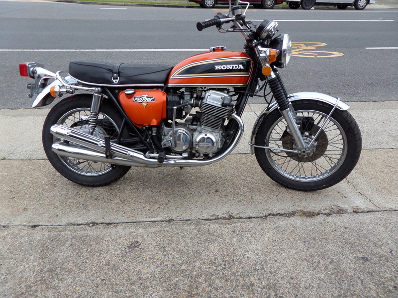 5/1974 HONDA 750/4. Orange, showing 10,274 miles, excellent condition, complete with original pipes, air filter and chainguard. Vin.#1421