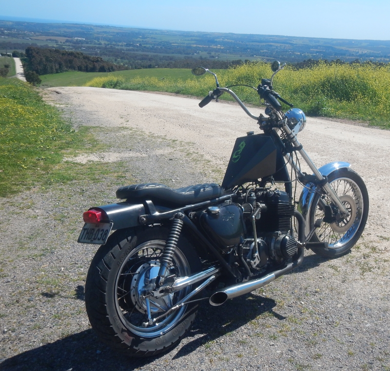 K6 CB750 chopper. Stainless forward controls, stainless collectors, stainless apehangers, new stainless diamond tank, new mini speedo, new seat, new side covers, new taillight. Only stainless collectors have been polished. The rest will come up like chrome once polished. Sweet running reliable motor. Carbies freshly balanced. New fuel filters, hoses and taps. New oil and filter. New battery. Fresh wiring, 16x5 rear wheel. Rear tyre near new with little wear. Lowering blocks. Very tidy rear cable brake. Moulded frame. Registered in SA for 3 months. Raked frame with 6" over forks. Frame was done at The Chopper Shed many years ago and came back recently where we installed new parts listed and tidied up bits like wiring and some cables and hoses. Front tyre has very little wear but fine age cracks and would be wise to replace if doing a lot of miles on it. Paint is satin black enamel with some wear and chips. Has been left as it so new owner can chose his own colour scheme. Polished stainless 3 prong sissy bar also available to fit as a separate sale item... $6500 Call Prof on 0428 562 554