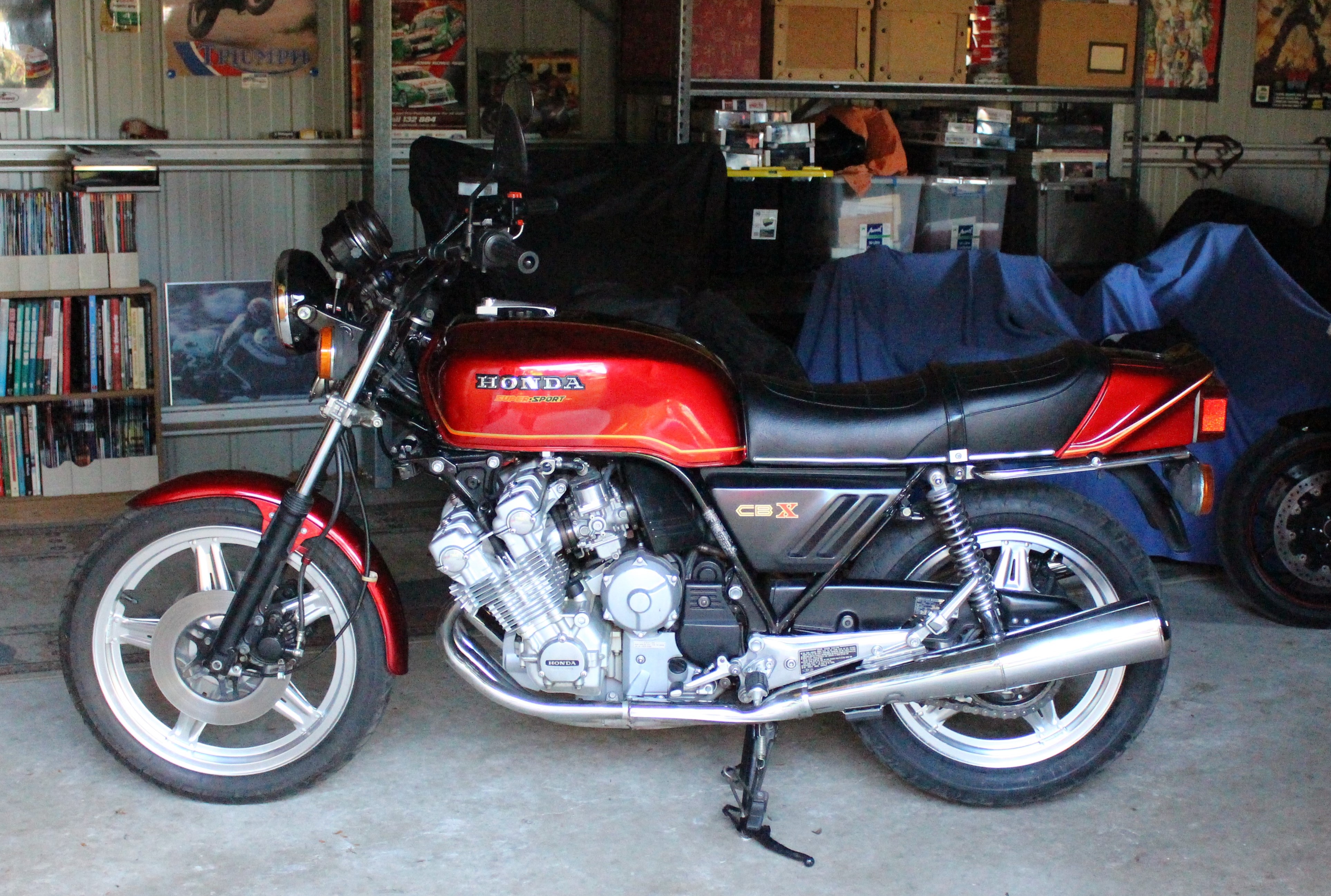 5/78 build, Candy Red, in very good cond, has mark on left muffler, as seen in photo, however a new Delkevic full exhaust system is provided, a spare silver CBX100Z tank in VGC is also supplied, currently not registered although it had prior NSW rego.