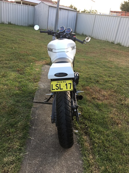 This bike I built over 7 months. I built is from the frame up. I keep the suspension frame tank engine and wheels. The rat of the bike I built myself. Painted the bike myself. And fabricated all the metal work made the seat and covered it. All new powder coat and engine painted. It's in new condition other than 16000 klms. I've ridden the bike 200 klms for the first test ride and there was no problems it's a great weekend cafe racer