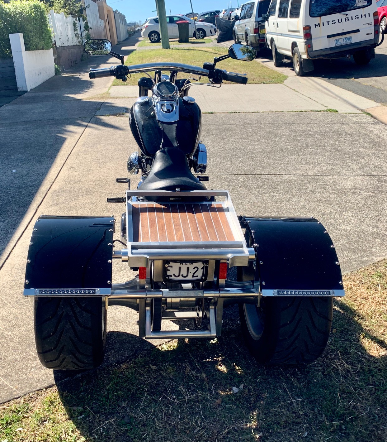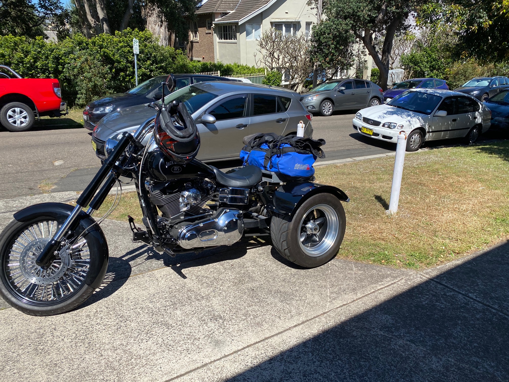 Selling this BEAST - Have run out of room, too many toys, Custom made 2005 Harley Davidson Dyna with a Trike conversation, A lot of research went into this project, Just completed 2018/2019, Direct with HD in the USA & AUS, just returned from a 3-day Hogs ride with NSWRL Charity tour, cruised amazingly. Currently at APL Motor Cycles in Windsor if you want to take a look and test run. Phone Adam & Julie Layton. Fully engineered with all compliance paperwork, Frankenstein 34 Dyna Ford diff, 14 X 8.5'' Wheels with sticky Toyo Proxes R888 Tyres like new, Front-wheel 21 X 3.5'', Custom handbrake setup, Inverted 58mm triple tree, Burleigh 2'' pullback bars, Vance & Hines pipes, Hypercharger intake, The Rear End custom made with aircraft billet aluminium, All nuts & bolts changed to 316, SS grade, twin disk brakes front & back, SS Braided lines throughout. Only 26,000kms on the clock & 12 months rego with a just-completed this week full service. Priced reasonable at $35,000 - about $65K-$70K gone into her and the new Harley Trikes are north of $65K, contact Adam and Julie direct at APL South Windsor NSW.