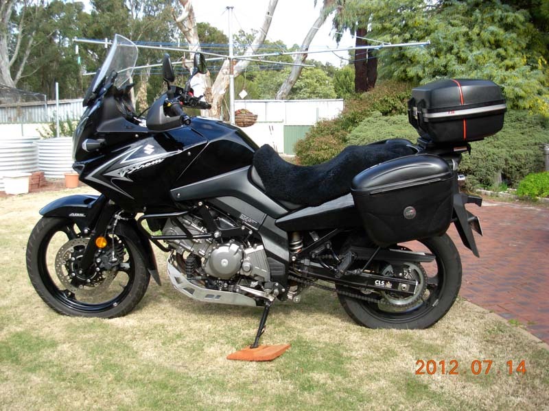 2009 SUZUKI V-STORM, 650CC, road bike, fill Givi panniers, OLS chain oiler, throttle lock, crash bars, wool seat cover, handle bar risers, 31,000 kms, excellent condition.