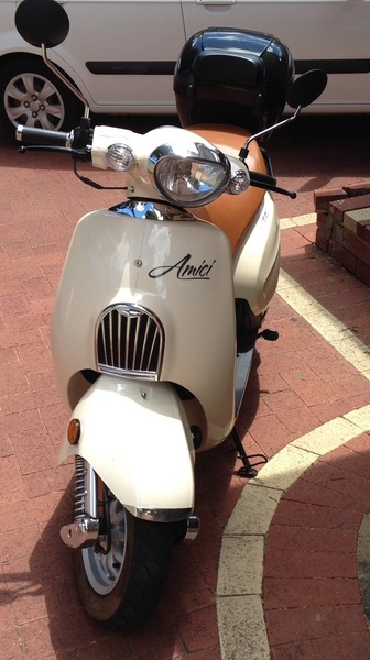 Excellent condition, practically brand new. Scooter is a 2 seater, witha beige seat and cream exterior. (comes with 2 sets of keys). Includes a
