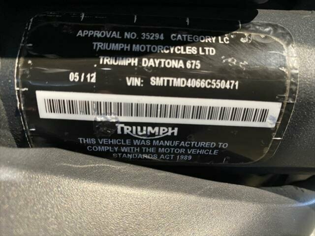 2012 Triumph Street Triple 675. Naked/Roadster/Sports. Complied 05/12. Good Condition bike.Has a few scratches so is priced accordingly and worth inspecting.Comes Fitted With:- ‘Bar end mirrors- Heated ‘gripsLocated in N__ C_____ NSW 160km north of Sydney CBD. Our Opening Hours are Monday - Friday 8:30am - 5:00pm. Saturday 8:30am - 4:00pm. Please contact us to arrange inspection by appointment. We offer Competitive Finance Insurance and Freight Australia wide. WE ARE A MARKET COMPETITIVE DEALERSHIP OUR STOCK IS PRICED ACCORDINGLY TO SELL. IF YOU THINK OUR PRICING IS OUT OF LINE WITH THE MARKET PLEASE TELL US! Give us the opportunity & we'll try our hardest to get you on your dream bike! Photographs shown represent part of the description.
