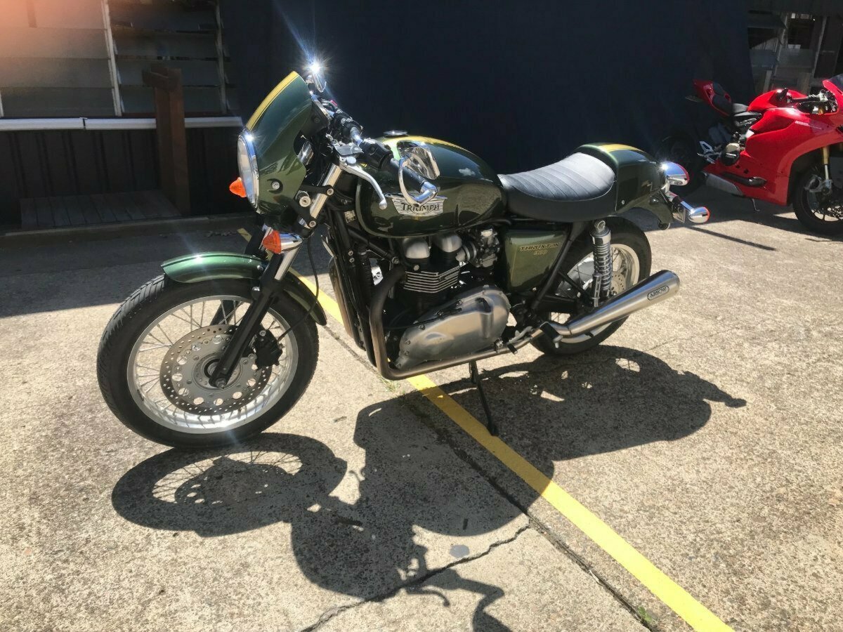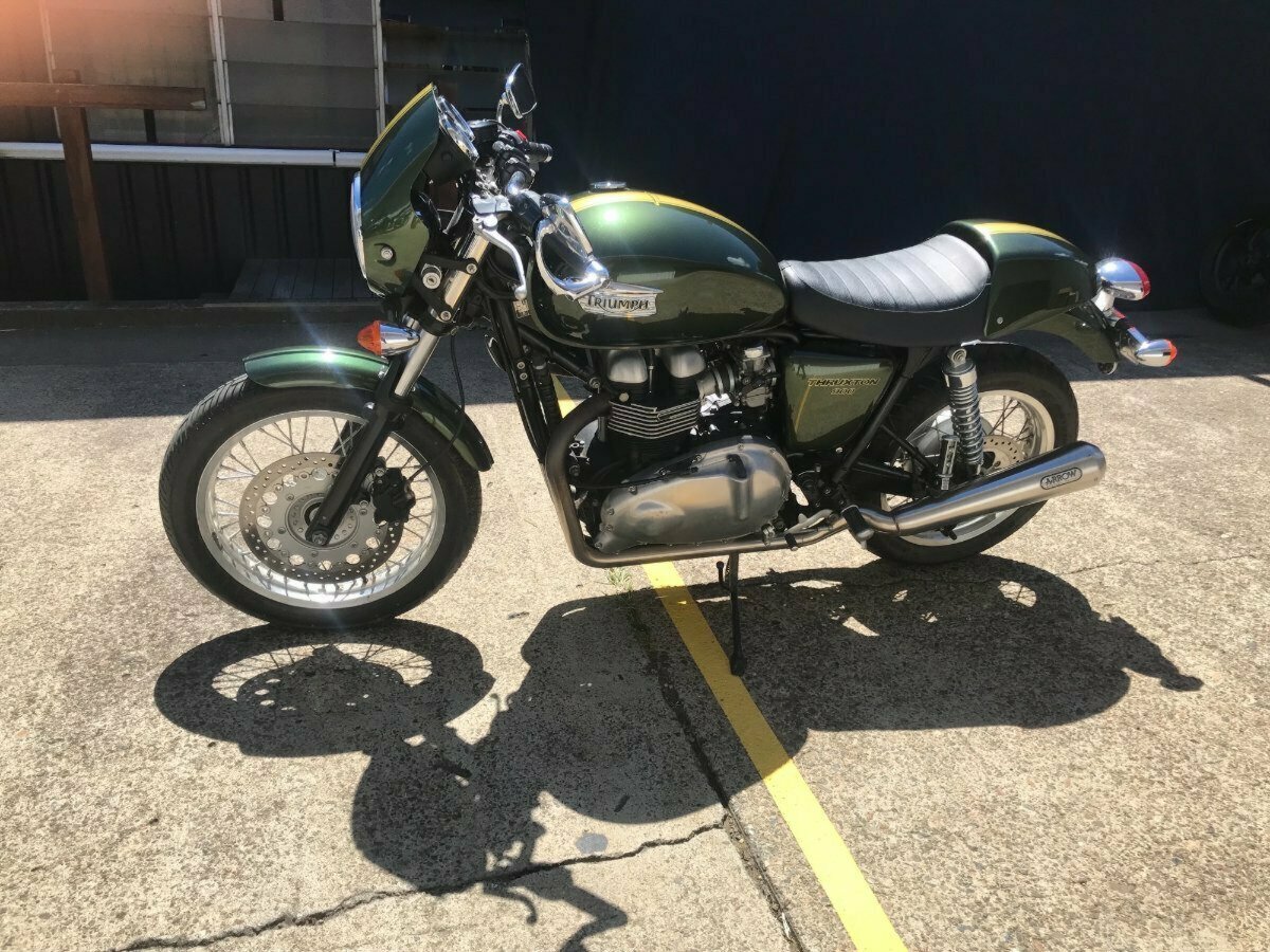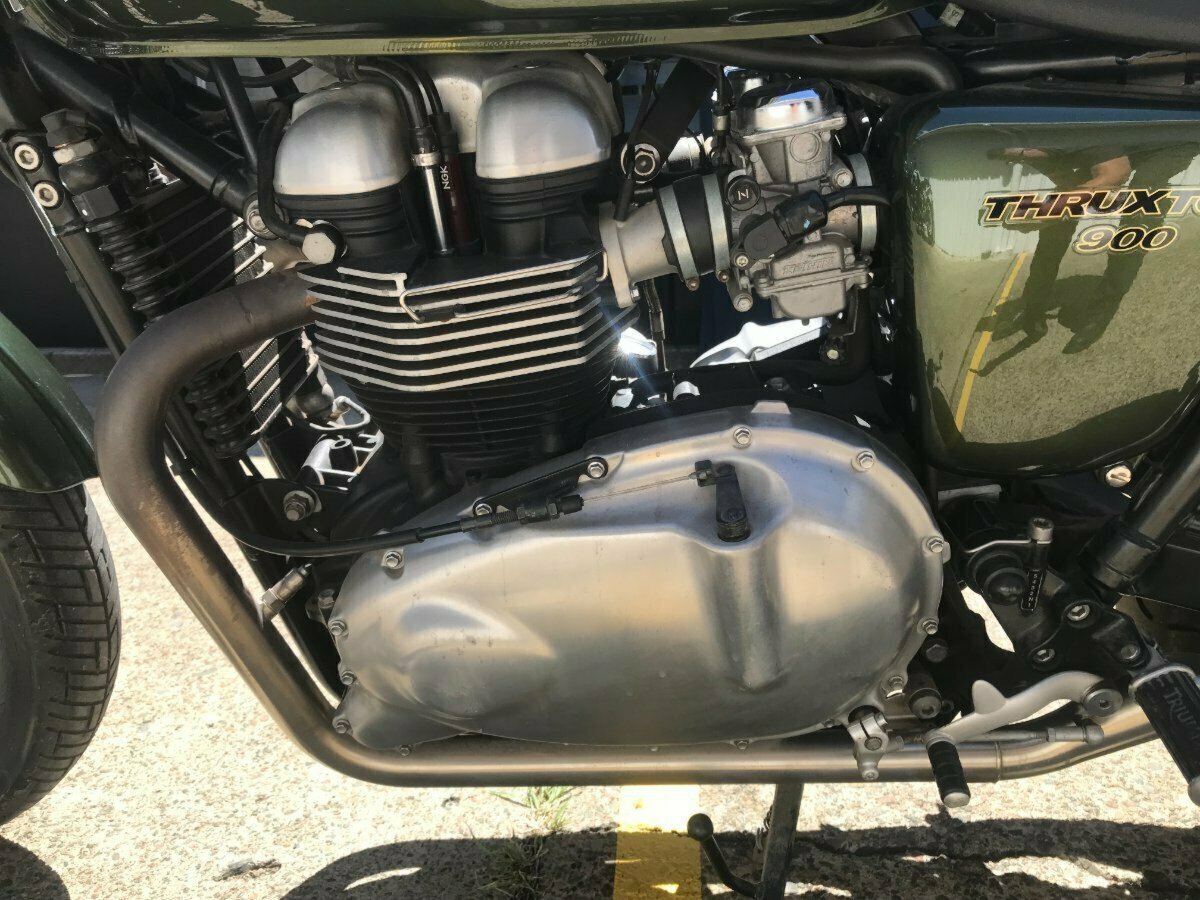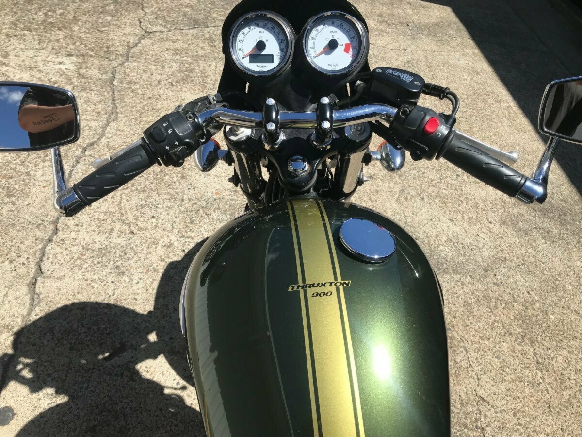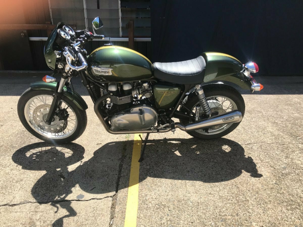 Looking for a classic ride with modern reliability? Look no further! This beautiful 2013 Triumph Thruxton 900 in striking British Green is the bike you've been dreaming of. With only 4081 KMS on the clock, it's practically a time capsule of retro style and raw power.^^Whether you?re hitting the open road or simply looking to stand out in the crowd, this Thruxton?s timeless caf racer looks and performance won?t disappoint.^^Key Features:^^Low Mileage: Only 4081 KMS, almost brand new!^Iconic Design: British Green paint job for that classic, stylish look.^Smooth Performance: 865cc parallel twin engine delivering plenty of punch.^Agile Handling: Perfect for both city cruising and weekend adventures.^Well-Maintained: Ready to ride with no work needed.^Don't miss your chance to own a piece of motorcycle history. This Thruxton is the perfect blend of vintage charm and modern engineering.^^With the option for a 3-year parts and labour Mechanical Protection Plan with any Approved Used bike, a 49-point inspection and 2 days free exchange for peace of mind, there is no better place to buy a Used Bike in Australia. With the most competitive Finance offers available, we can organise to have your bike delivered directly to your door anywhere in Australia through our dedicated motorcycle freighters. So, take advantage of our competitive pricing and the largest range of Used Motorcycles in Australia for peace of mind, ease & convenience. A TeamMoto Approved Used Bike is the best choice in Australia for your next bike. Why buy elsewhere?