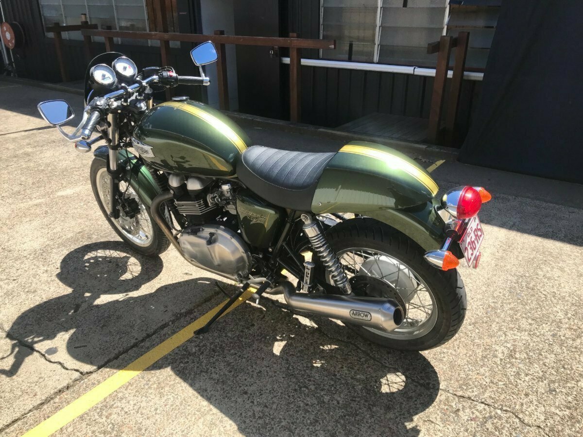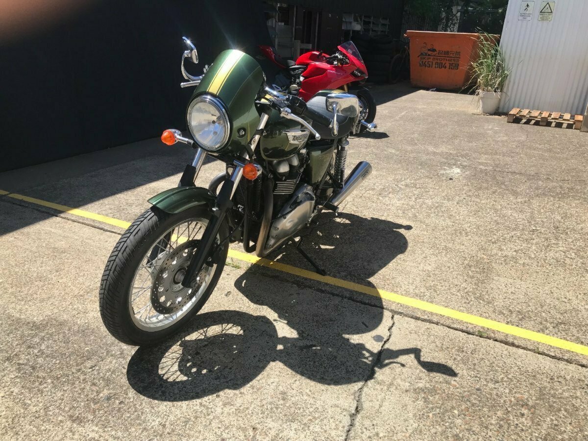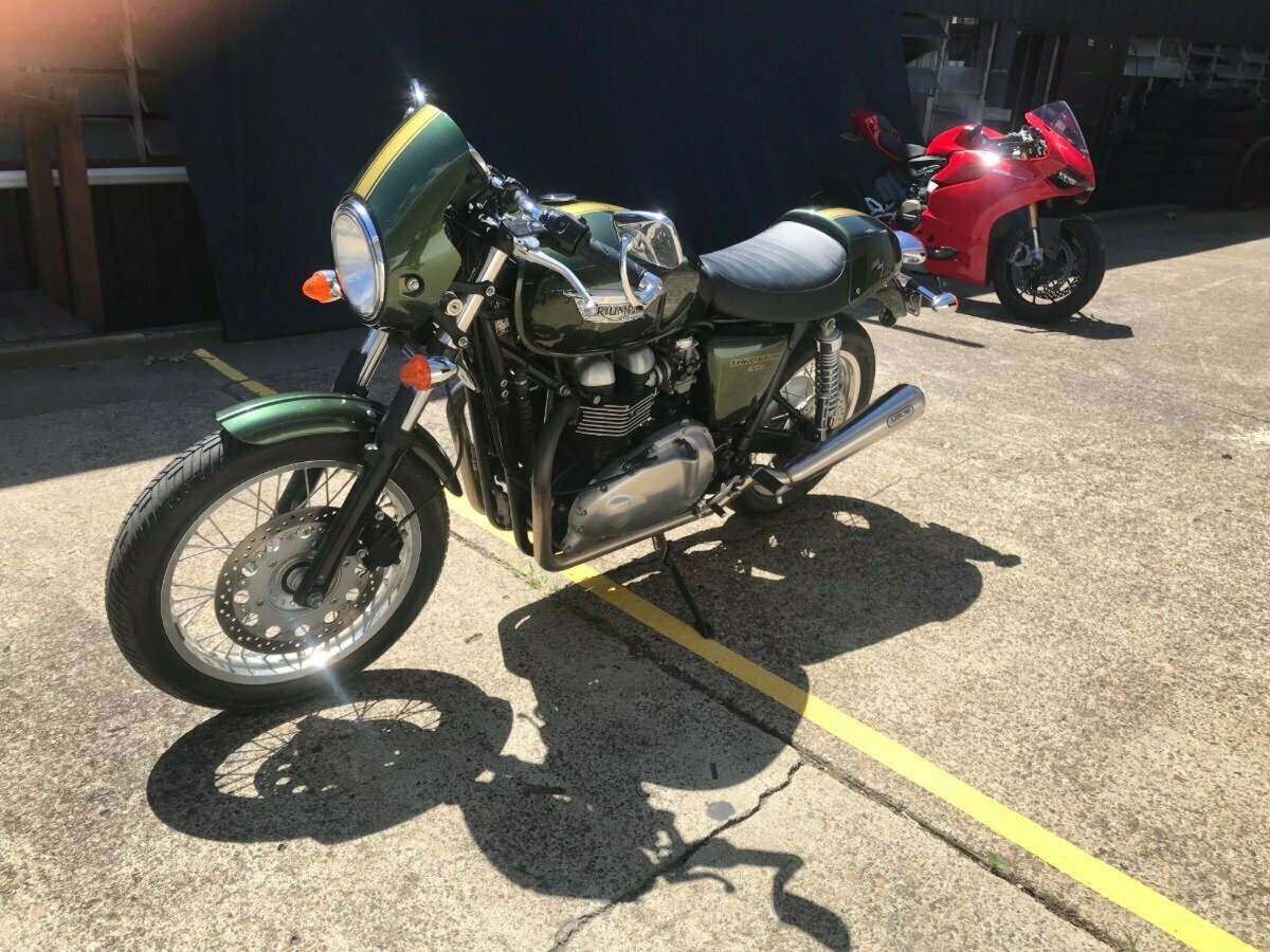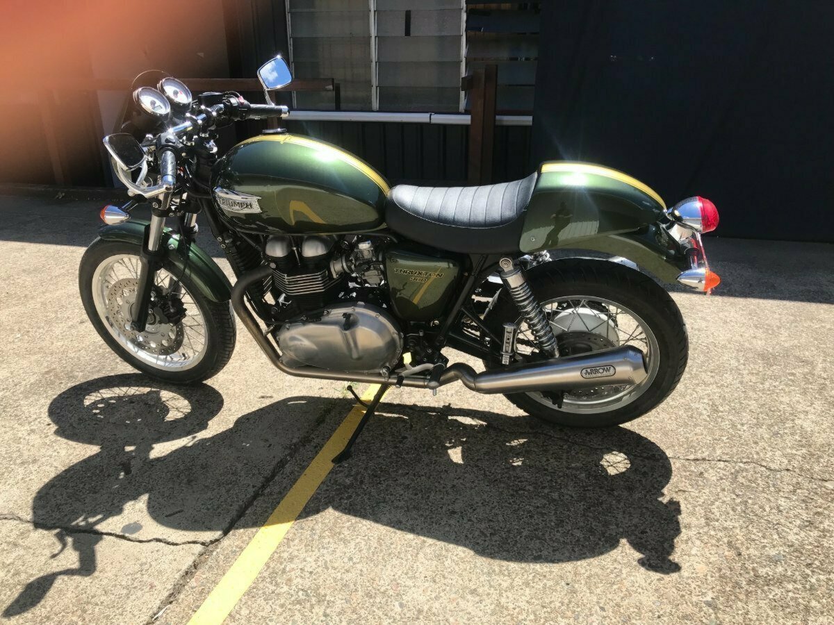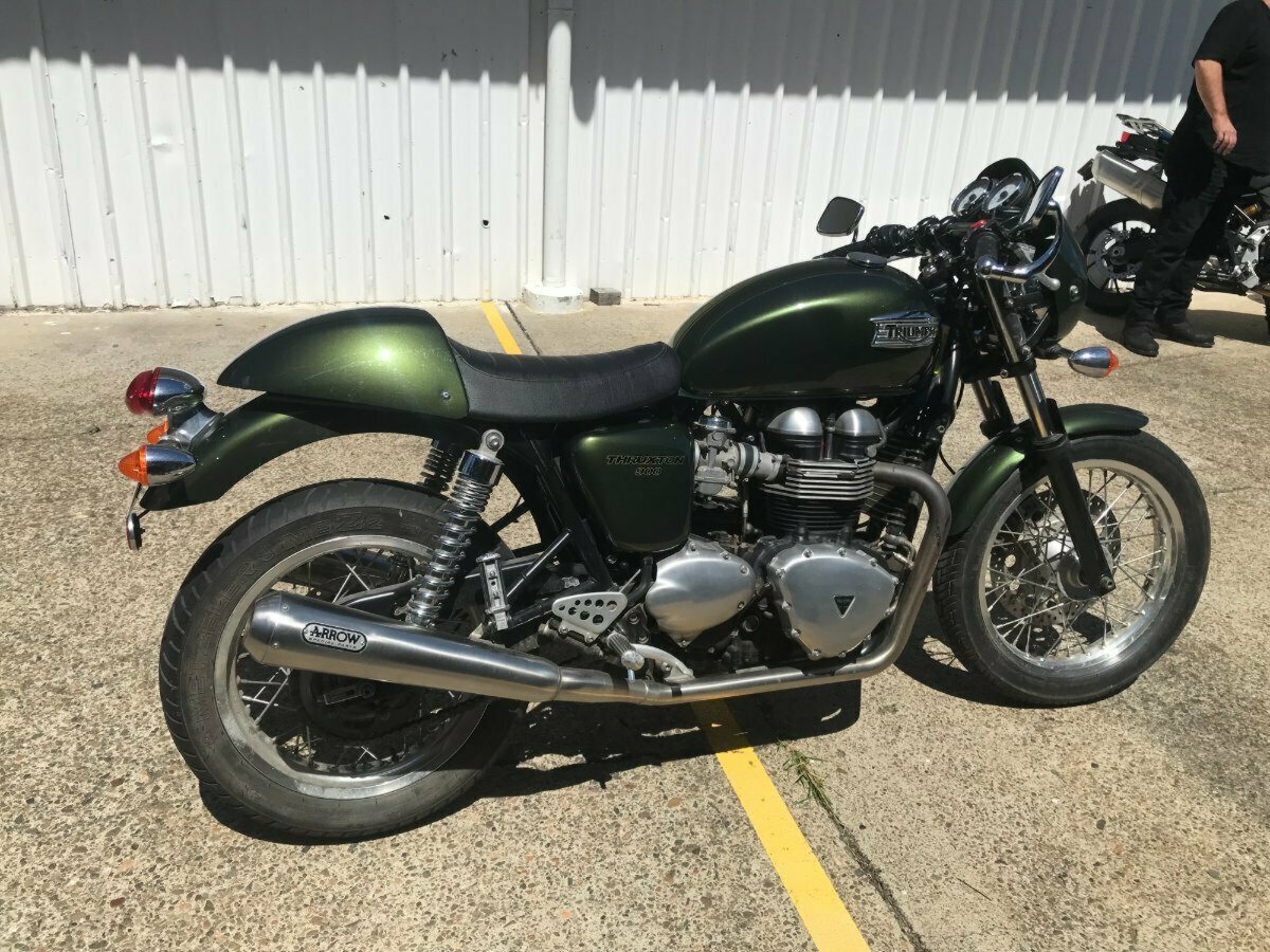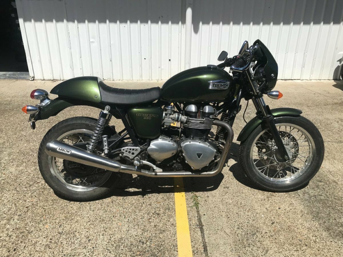 Looking for a classic ride with modern reliability? Look no further! This beautiful 2013 Triumph Thruxton 900 in striking British Green is the bike you've been dreaming of. With only 4081 KMS on the clock, it's practically a time capsule of retro style and raw power.^^Whether you?re hitting the open road or simply looking to stand out in the crowd, this Thruxton?s timeless caf racer looks and performance won?t disappoint.^^Key Features:^^Low Mileage: Only 4081 KMS, almost brand new!^Iconic Design: British Green paint job for that classic, stylish look.^Smooth Performance: 865cc parallel twin engine delivering plenty of punch.^Agile Handling: Perfect for both city cruising and weekend adventures.^Well-Maintained: Ready to ride with no work needed.^Don't miss your chance to own a piece of motorcycle history. This Thruxton is the perfect blend of vintage charm and modern engineering.^^With the option for a 3-year parts and labour Mechanical Protection Plan with any Approved Used bike, a 49-point inspection and 2 days free exchange for peace of mind, there is no better place to buy a Used Bike in Australia. With the most competitive Finance offers available, we can organise to have your bike delivered directly to your door anywhere in Australia through our dedicated motorcycle freighters. So, take advantage of our competitive pricing and the largest range of Used Motorcycles in Australia for peace of mind, ease & convenience. A TeamMoto Approved Used Bike is the best choice in Australia for your next bike. Why buy elsewhere?