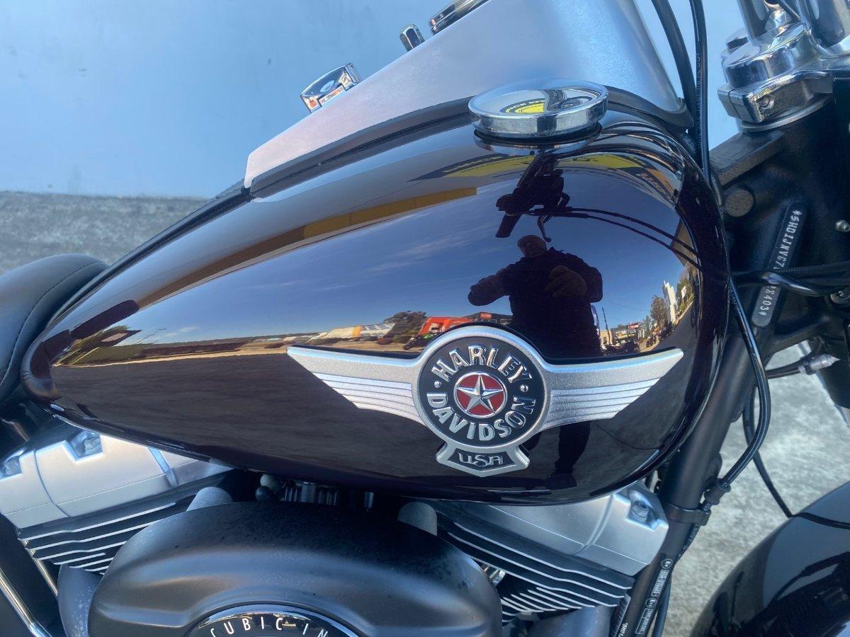 For sale is a 2014 Harley-Davidson Fat Boy 1700cc, presented in stunning deep burgundy and showing low kilometres. This iconic cruiser has been fitted with big radius Vance & Hines pipes that deliver a deep, throaty sound and enhanced performance, making every ride unforgettable. It also comes with a passenger backrest and rack for added comfort and practicality, along with 2-inch Burley bars that give it a bold stance and improved handling.^^This Fat Boy is the perfect combination of classic Harley style and modern upgrades, offering both comfort for long rides and the unmistakable presence that turns heads wherever it goes. Well cared for and ready to ride, it?s a fantastic opportunity to own a powerful and beautifully finished Harley at a great up to a 3 year mechanical protection plan and the most competitive finance and insurance packages available, as Australia?s largest motorcycle retailer no one makes it easier to purchase a used Motorcycle. Plus we can organise to have your bike delivered directly to your door anywhere in Australia through our dedicated motorcycle freighters. This Approved Used Bike comes with a 49-Point Quality Inspection, 2-Day FREE Exchange and 90 Day Mechanical Protection Plan extension when you purchase a 3 year plan. Ensuring peace of mind, ease & convenience. An Approved Used Bike is the best choice in Australia for your next bike. Why buy elsewhere?