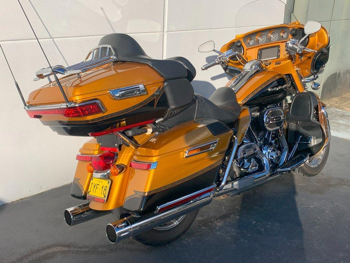 Just arrived in amazing condition inspection sure to impress. Amazing CVO paint in gold rush carbon with loads of shiny chrome to get you pair of screaming eagle slip ons to compliment the visual aura this Harley deserves. Inspected and passed with flying colours, be quick to grab this unique and well looked after CVO.^We are the Genuine Harley-Davidson Dealership on the Coast making it the ultimate store with access to some of NSW?s best riding roads. Call the store today to book a test ride and ask about our Competitive Finance Packages, and Motorcycle Protection Plans. OPEN 6 DAYS A WEEK, we welcome any Trades and make genuine offers to purchase Used Motorcycles. We specialize in custom Harley-Davidson builds, with Factory Trained Technicians and a Master Tech. We pride ourselves in giving you the ultimate Harley-Davidson experience throughout your purchase and for years to come, becoming part of our Family. View one of the largest selections of new and used Harley-Davidson motorcycles with an extensive range of Parts, Accessories and Motor clothes.