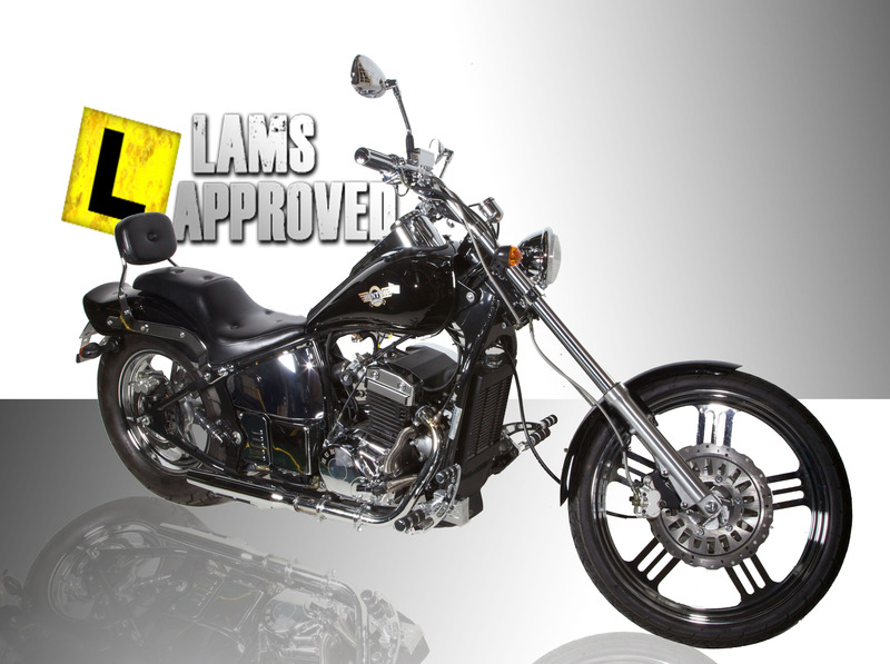 Full size Production Chopper. Learner approved, low seat, long rake. Billet Forward Controls, chubby T bars. This bike is a real head turner. Brand new and in store now. *Price does not include ORC's.
