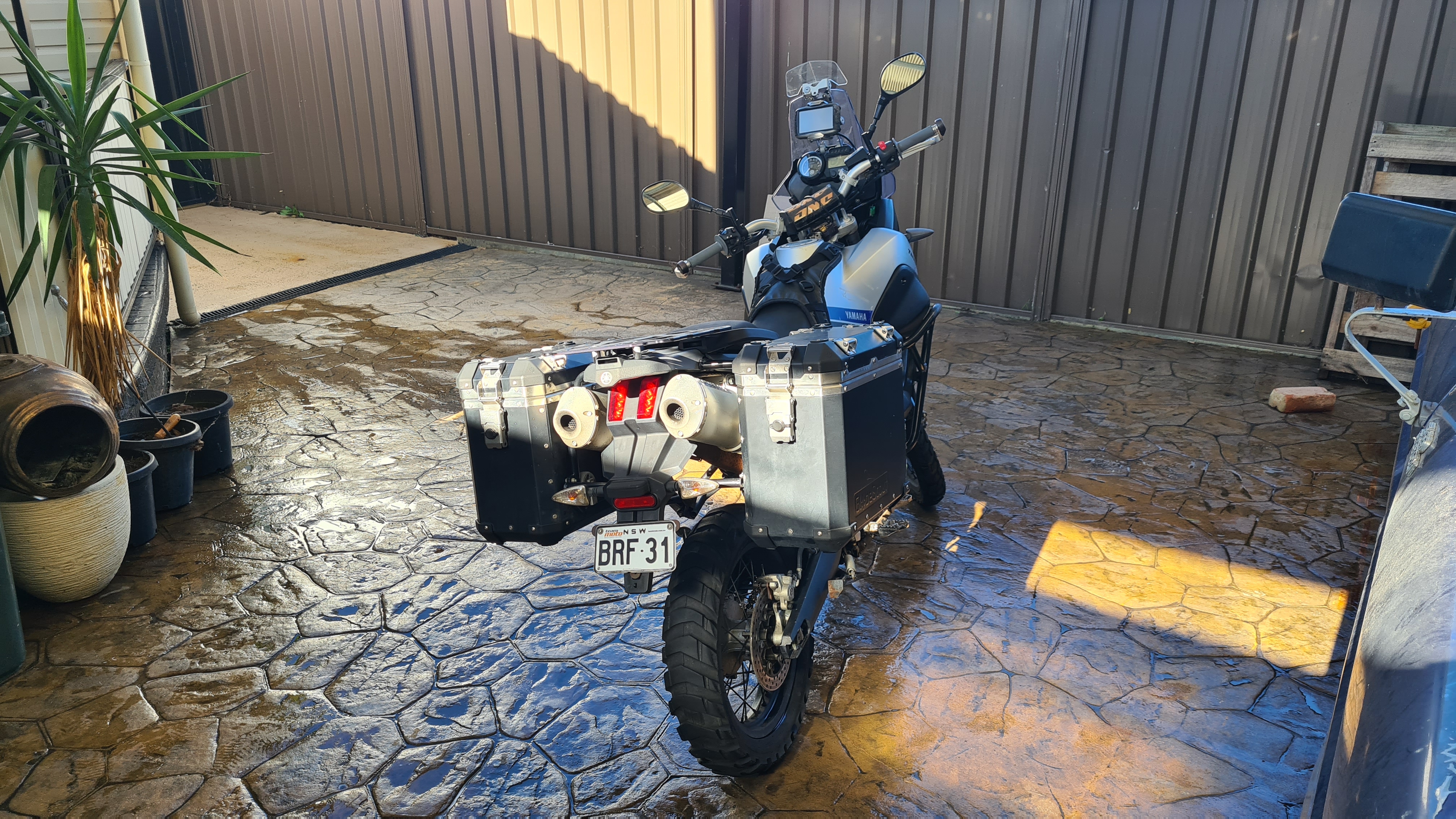 Touratech headlight guard, touratech screen riser, touratech gps mount, garmin motorcycle gps, denali spotlights, Bark busters and weights, Ralle-Moto steering damper, teknik upgraded front suspension, ohlins rear suspension, sw-motech crash bars, sw-motech center stand, B&B Bash plate,Barrett Twin exhaust, barret luggage racks, GlobeScout Hard cases and topbox, Many touratech scuff guards, pivot pegs