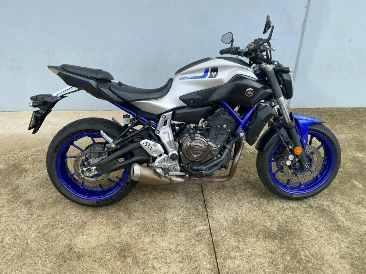 For sale: 2016 Yamaha MT-07 in sleek Silver, a dynamic and versatile motorcycle that perfectly balances performance and practicality. This LAMS-approved bike is an ideal choice for riders of all skill levels, offering the excitement of a powerful twin-cylinder engine with the confidence and control of a lightweight, easy-to-handle chassis.^^This MT-07 is in very good condition, reflecting careful ownership and regular maintenance. The striking silver finish highlights its modern, aggressive styling, making it a standout on the road. Powered by Yamaha?s 689cc parallel-twin 'crossplane concept' engine, this bike delivers a responsive and exhilarating ride, whether you?re navigating city streets, carving up mountain roads, or cruising on the open highway.^^The MT-07?s ergonomic design ensures comfort for longer rides, while its compact frame and sharp handling make it agile and fun in any setting. Features include a six-speed gearbox, digital instrumentation, and Yamaha?s renowned reliability, making it a dependable companion for both everyday commutes and weekend adventures.With up to a 3 year mechanical protection plan and the most competitive finance and insurance packages available, as Australia?s largest motorcycle retailer no one makes it easier to purchase a Learner Approved Motorcycle. Plus we can organise to have your bike delivered directly to your door anywhere in Australia through our dedicated motorcycle freighters. This Approved Used Bike comes with a 49-Point Quality Inspection, 2-Day FREE Exchange and 90 Day Mechanical Protection Plan extension when you purchase a