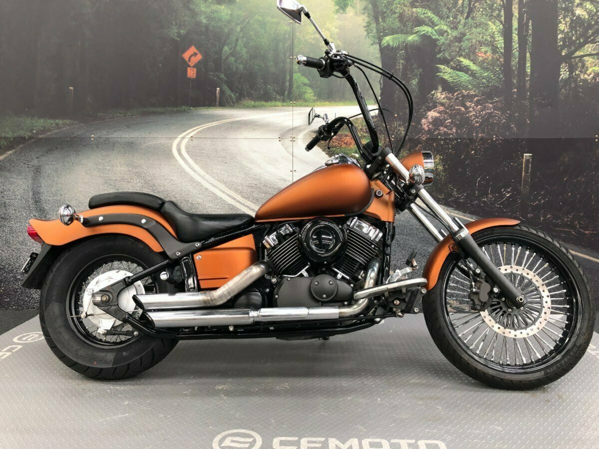JUST INTO STOCK!! XVS650 CUSTOM!! Custom matt brown paint, apes, 21 INCH FRONT SPOKE WHEEL, DIGITAL DASH, forward controls and floor boards this bikes ready to grace your drive way, the perfect LAMS cruiser! THIS