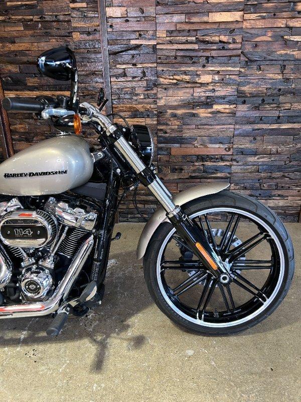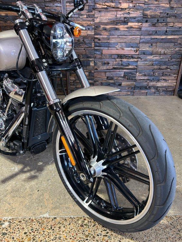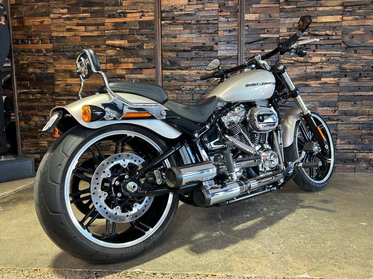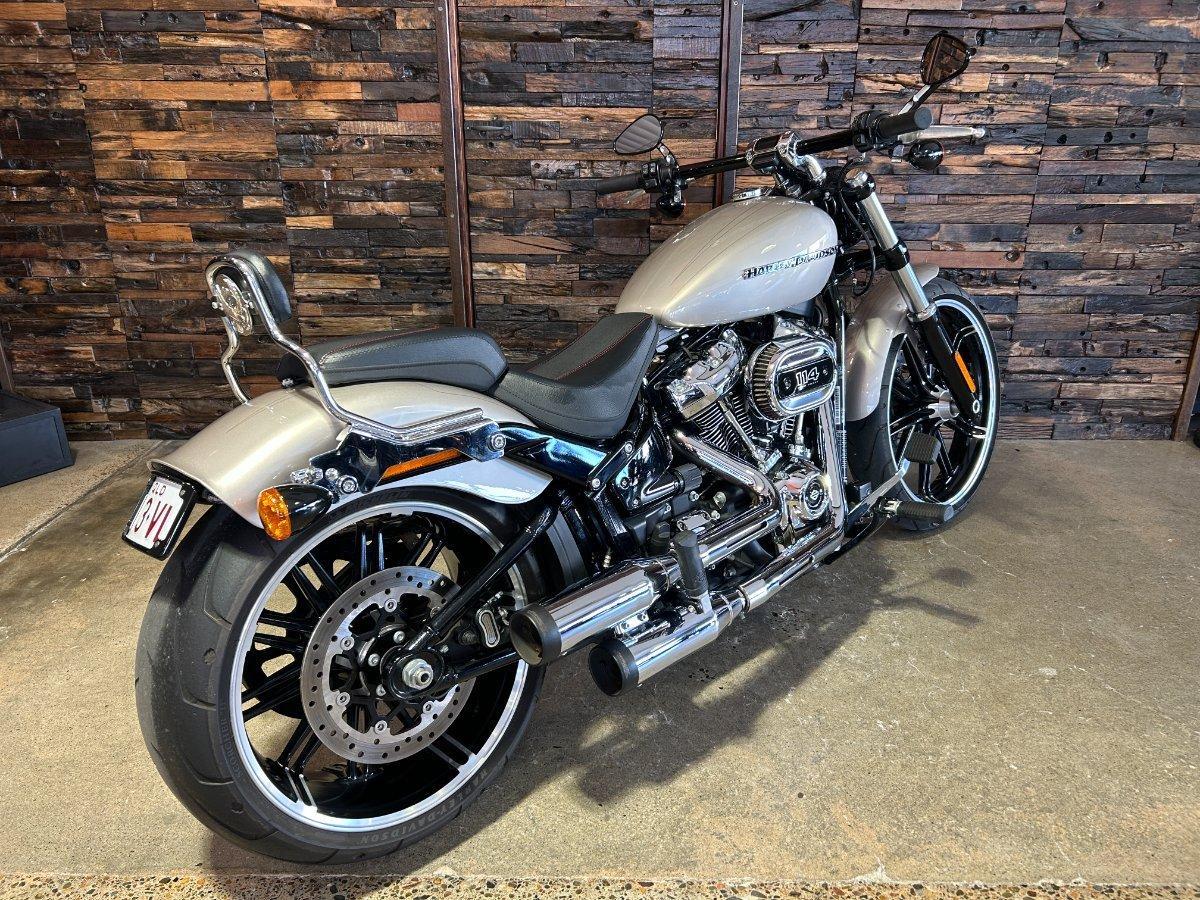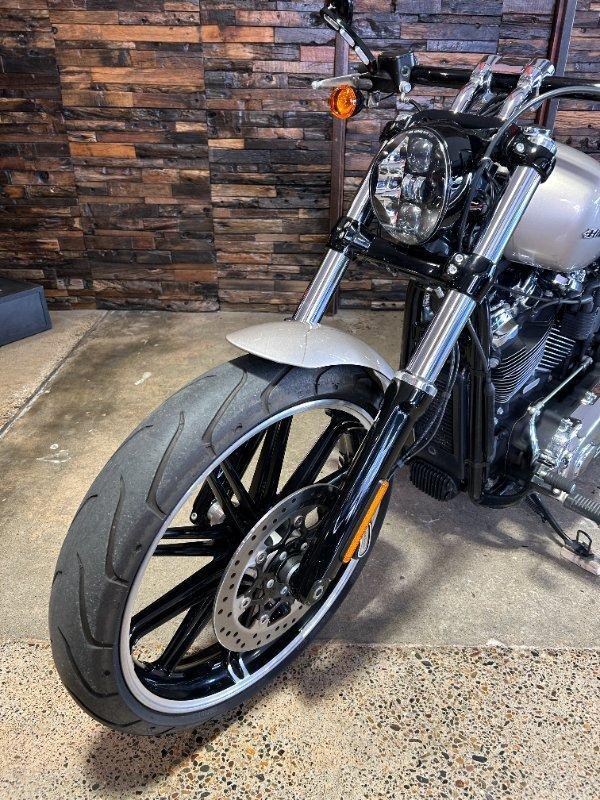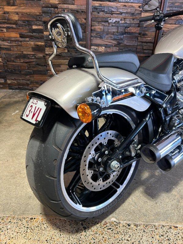 2018 HARLEY-DAVIDSON FXBR BREAKOUT 114. This Breakout 114 is a Genuine Aussie Delivered one owner example in great condition! It has been fitted with a Stage 1 Performance Upgrade with Screamin Eagle exhaust and tuner. It has also been fitted with a Quick release sissy bar and Tail Tidy. Presented in Silver Fortune colour with all paint and chrome in super clean condition. Supplied with two keys, fobs and tuner. It has two good tyres and is in good road worthy condition. Nothing like the ride and looks of a Breakout! This one is no exception! Don't miss it!