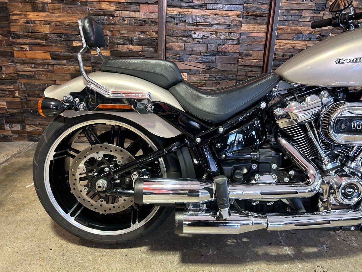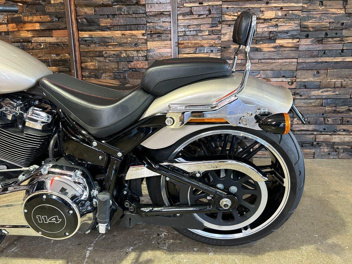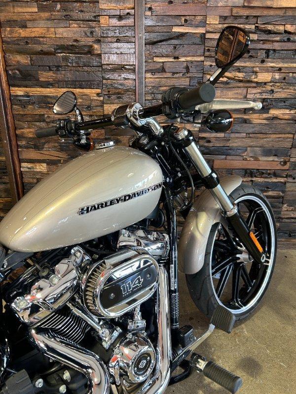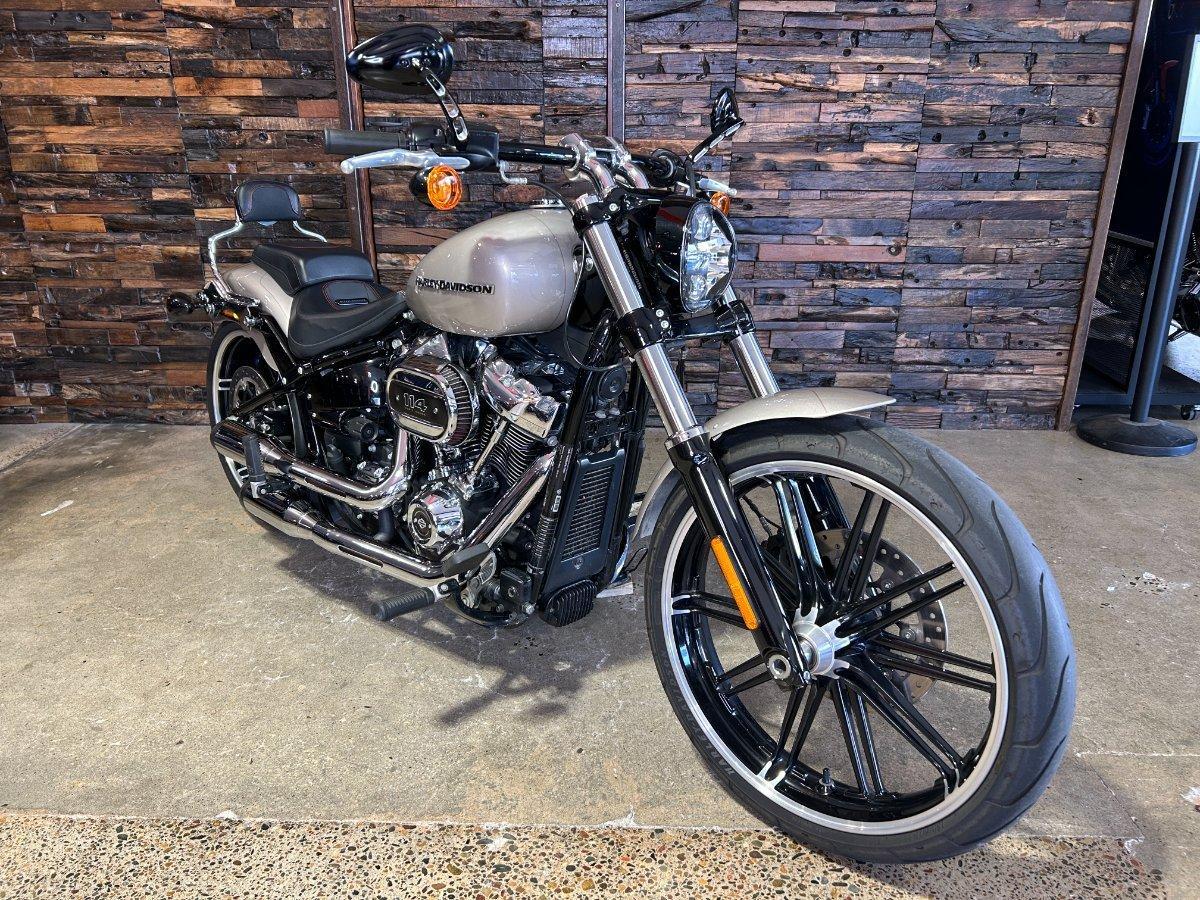 2018 HARLEY-DAVIDSON FXBR BREAKOUT 114. This Breakout 114 is a Genuine Aussie Delivered one owner example in great condition! It has been fitted with a Stage 1 Performance Upgrade with Screamin Eagle exhaust and tuner. It has also been fitted with a Quick release sissy bar and Tail Tidy. Presented in Silver Fortune colour with all paint and chrome in super clean condition. Supplied with two keys, fobs and tuner. It has two good tyres and is in good road worthy condition. Nothing like the ride and looks of a Breakout! This one is no exception! Don't miss it!