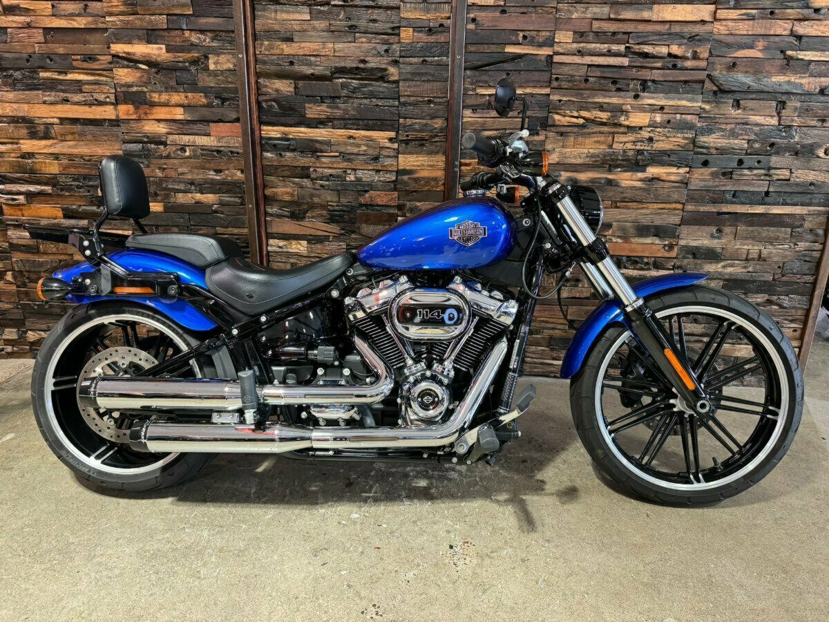 2018 HARLEY-DAVIDSON FXBRS SOFTAIL BREAKOUT. This Breakout is a Genuine Aussie Delivered low kilometre Example in good condition. It has been fitted with Rinehart Exhausts, Quick release sissy bar and rack, SikTail tail tidy and swing arm bag. It has also been fitted with a Genuine Sundowner rider seat with red stitching. Presented in Nebula Blue, with good clean paint and chrome all over. Two good tyres and QLD registration until July 2024 and has just been serviced in our workshop.^^Go to our Website morganandwacker.com.au, to take advantage of the easy 'Buy Now' options, and complete your own Online Finance Application to get your Freedom Journey Started!^^We are the 2023 Australian and New Zealand H-D Large Dealer of the year & 2022 Australian and New Zealand H-D Dealer of the Year Overall. Australia's oldest Harley-Davidson Dealership and the oldest in the world outside the USA! We have a friendly and experienced Sales Team, Harley-Davidson Parts and Motorclothes specialists, as well as Quick Turnaround Finance, and Insurance, as well as the best Motorcycle Protection Plan options available.