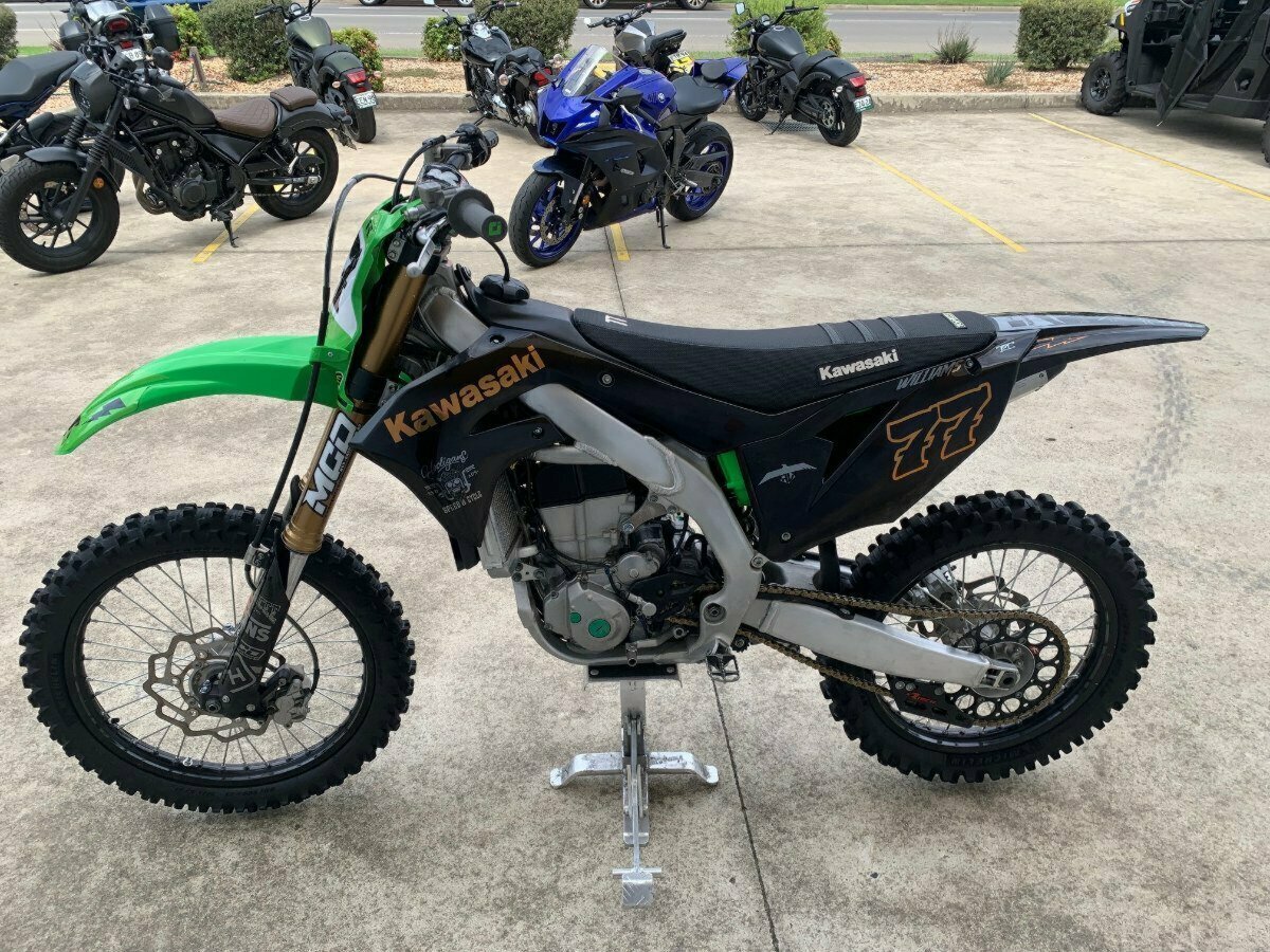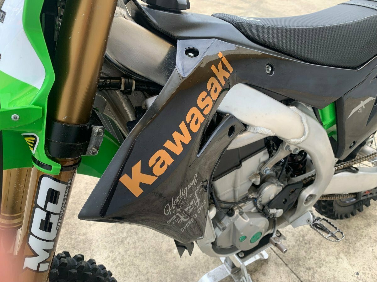 : 2019 Kawasaki KX 450J Rev up your adrenaline with this beastly 2019 Kawasaki KX 450J! Designed for thrill-seekers and performance enthusiasts, this powerhouse of a bike is ready to dominate any terrain with unmatched precision and power. Equipped with eye-catching graphic kit for added style.Like NEW, straight from the shop. : Near-new tires ensure optimal traction and control.Whether you're hitting the trails or tearing up the track, this Kawasaki KX 450J delivers an exhilarating ride every time. Don't miss your chance to own this high-performance machine that's ready to take on any challenge!
