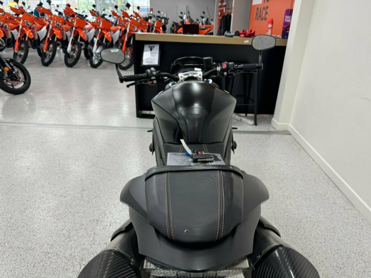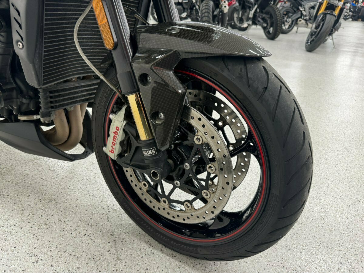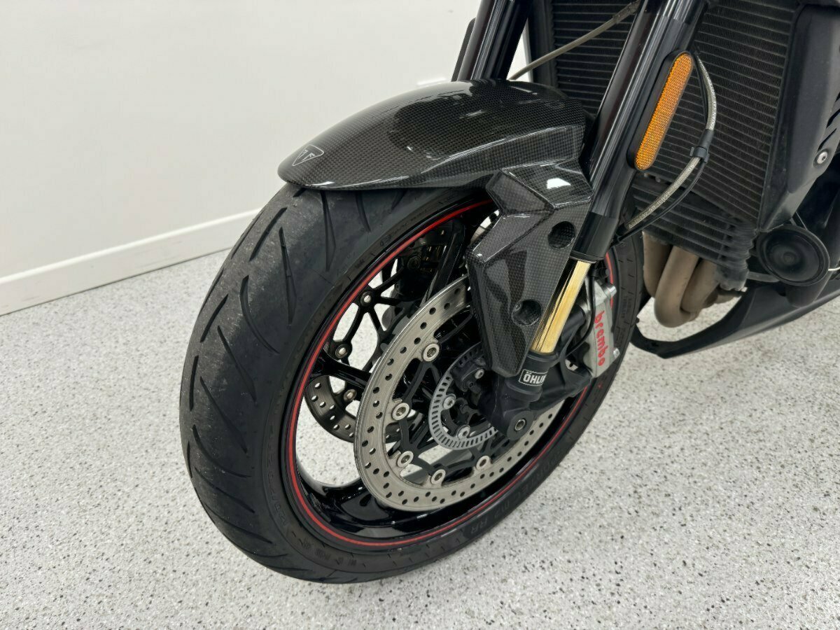 Triumphs flagship naked bike of the era. Big brash triple cylinder engine coupled with the best names in suspension and brakes, Ohlins and Brembo. The RS also comes out of the box dripping in Carbon panels and fitted with Arrow exhausts.. This example is in great condition with good service history. An absolute pleasure to ride.^