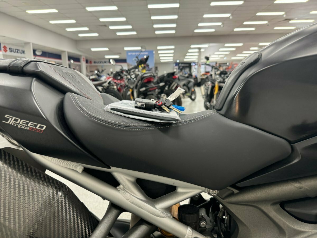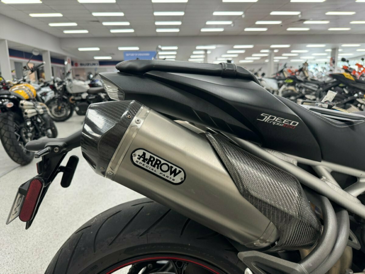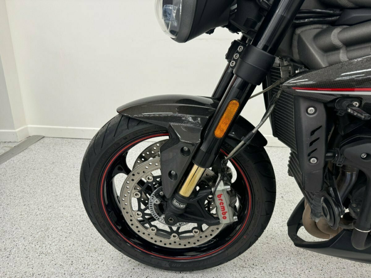 Triumphs flagship naked bike of the era. Big brash triple cylinder engine coupled with the best names in suspension and brakes, Ohlins and Brembo. The RS also comes out of the box dripping in Carbon panels and fitted with Arrow exhausts.. This example is in great condition with good service history. An absolute pleasure to ride.^