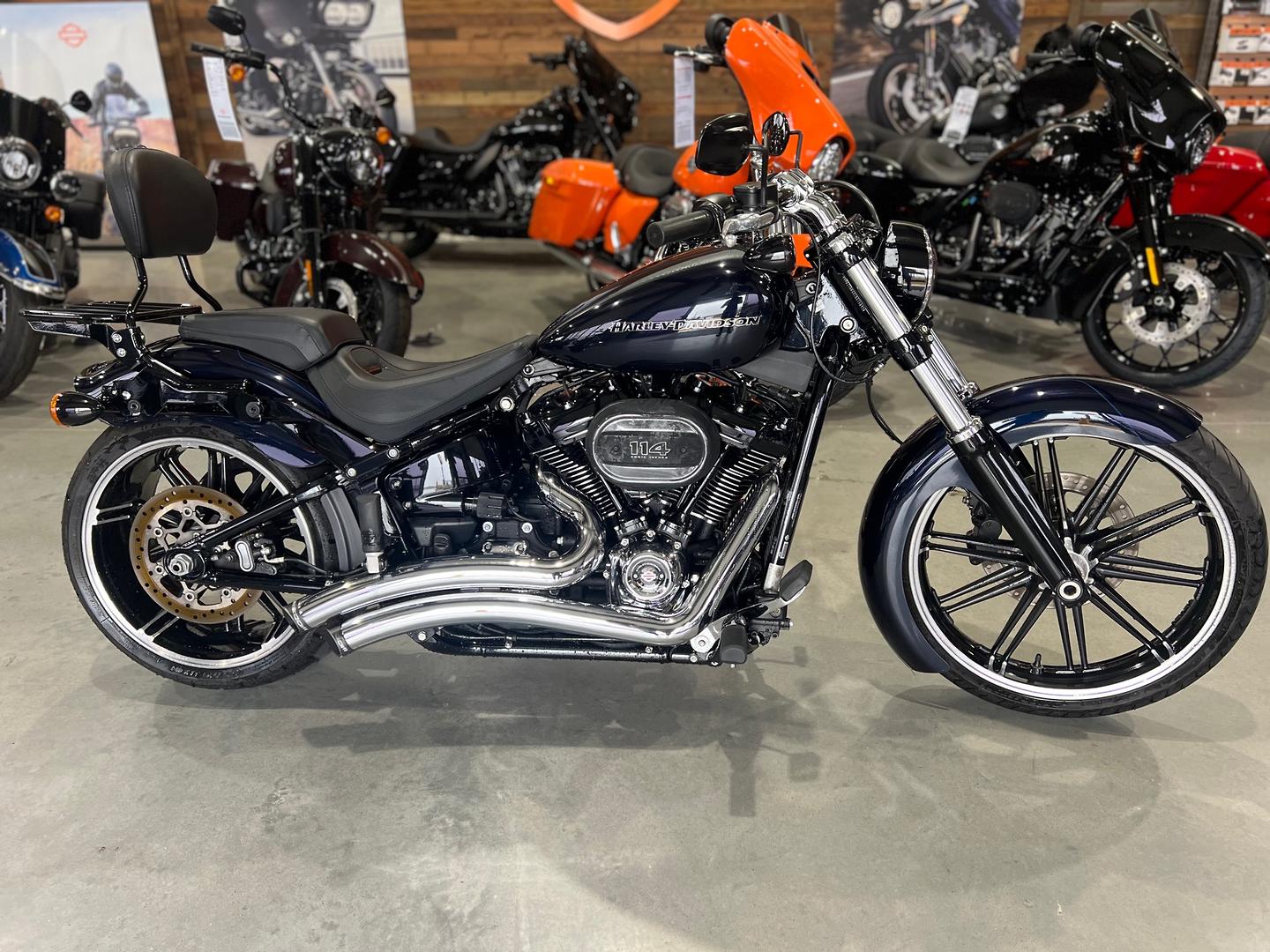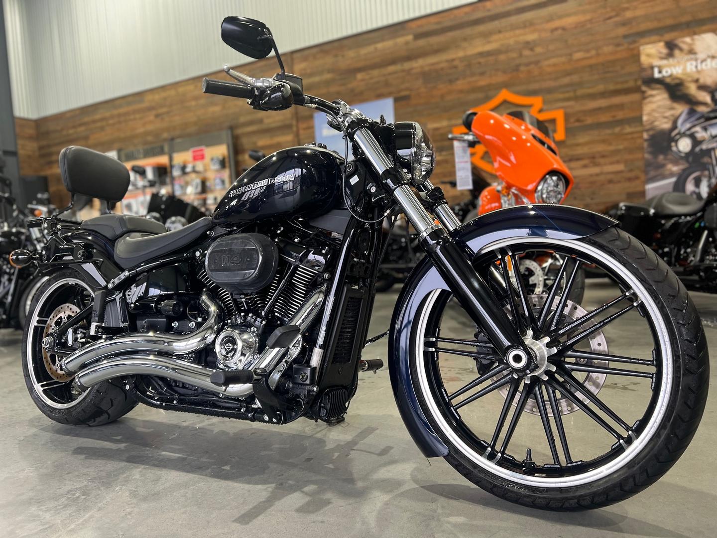 The Breakout® 114 model takes long, lean muscle to the modern edge with the Milwaukee-Eight® 114 engine that stands out like a flexing bicep. It sends massive torque to the 240mm rear tire. There are custom details from fender to fender. And a re-invented Softail® frame and suspension.