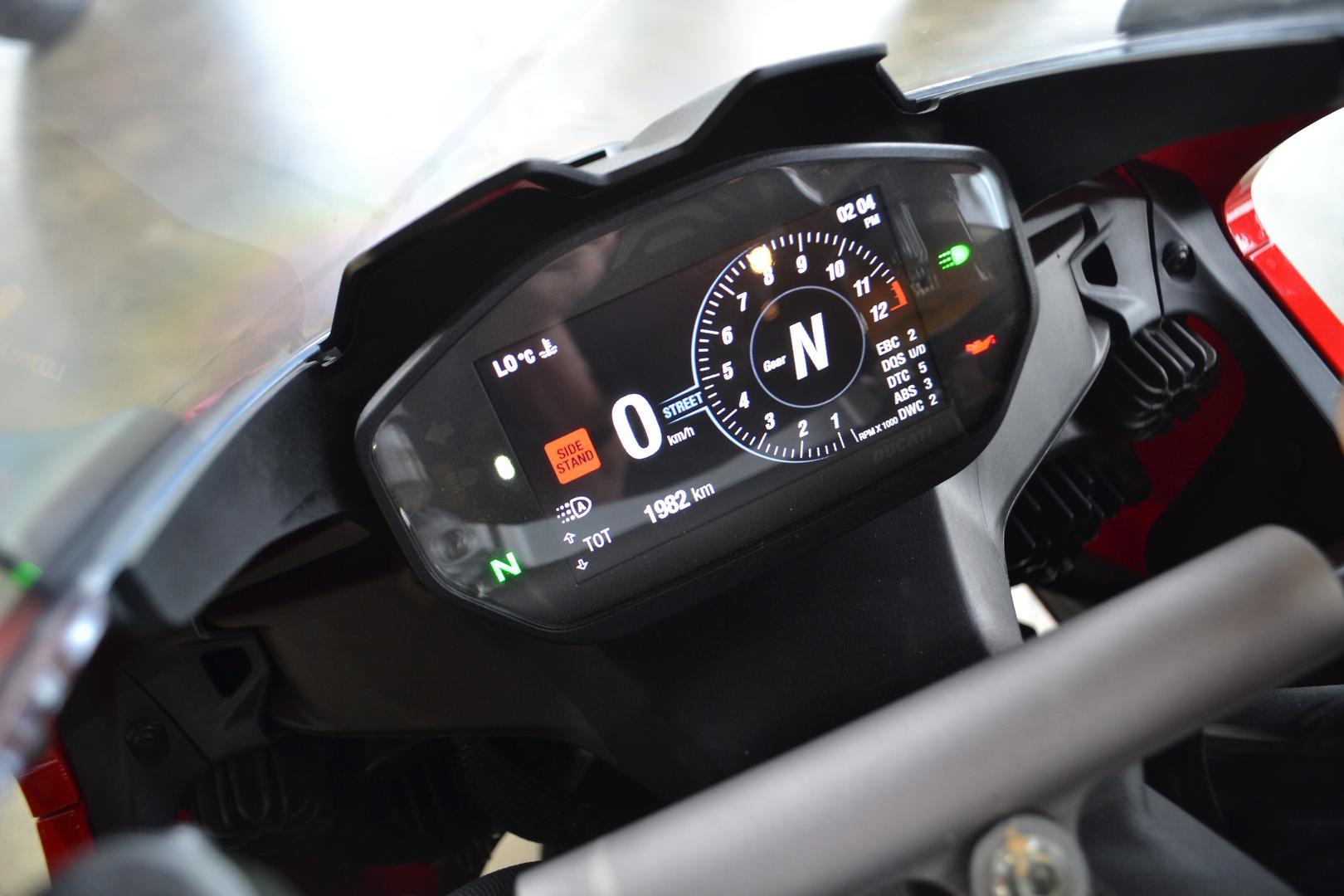 The ABS system on the Panigale V2 features the cornering function (which keeps the ABS working even with the bike leaned over) and has the same intervention logic and control as on the V4.