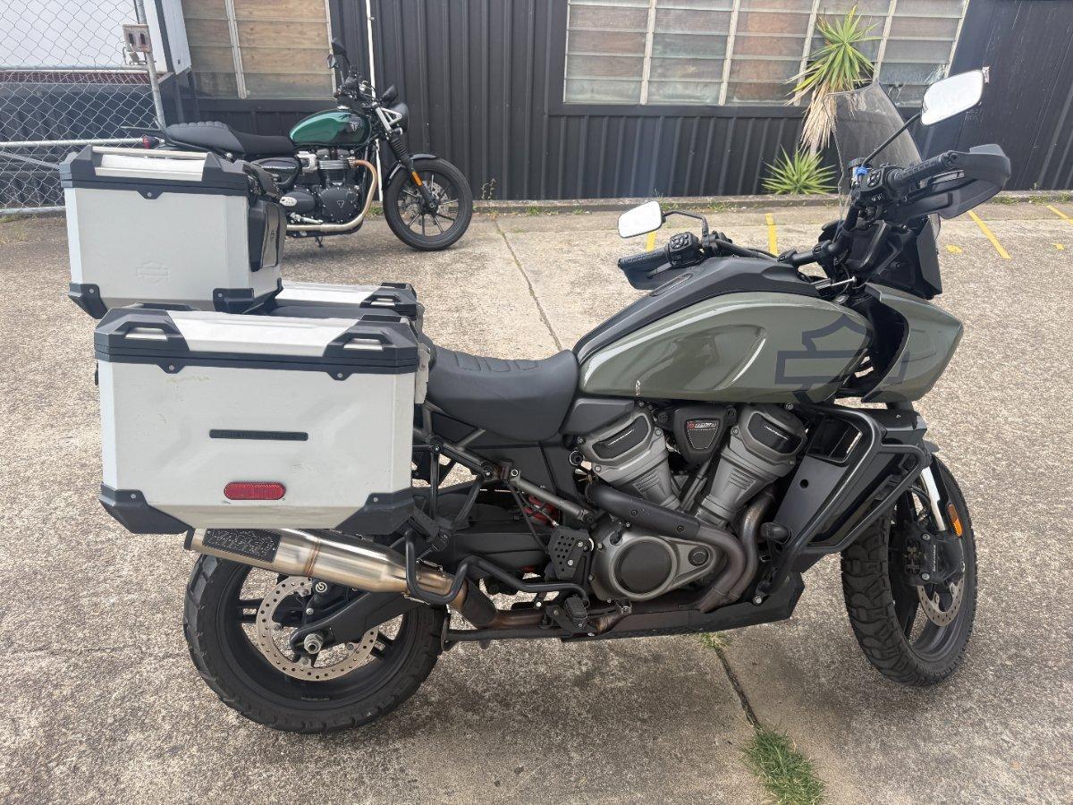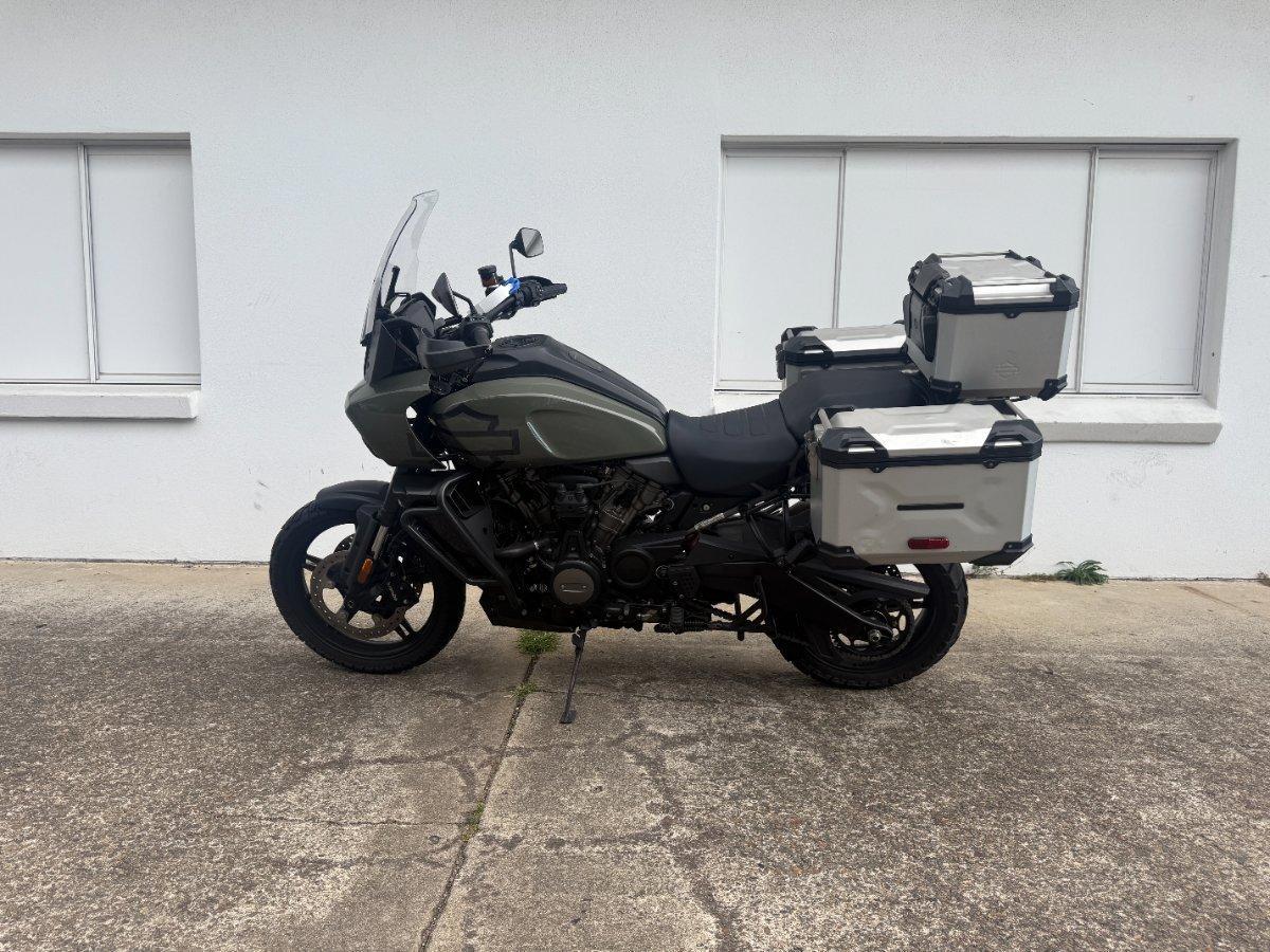 Adventure Redefined by Harley-Davidson^The 2021 Pan America 1250 marks Harley-Davidson?s bold entry into the adventure-touring segment, blending American muscle with global versatility. Powered by the all-new Revolution Max 1250 engine, this liquid-cooled 1,252cc V-twin delivers an exhilarating 150 horsepower and 94 lb-ft of torque, offering a thrilling ride across highways, trails, and everything in between.^Key Features:^^Revolution Max 1250 Engine: High-revving, torque-rich performance with a 9,500 RPM redline.^Adaptive Ride Height (Special model): Automatically lowers the seat height at stops for added confidence.^Semi-Active Suspension (Special model): Adjusts in real-time for optimal comfort and control.^Touchscreen TFT Display: Full-color 6.8' display with Bluetooth, navigation, and ride modes.^Multiple Ride Modes: Rain, Road, Sport, Off-Road, and customizable settings.^Off-Road Capability: Spoked wheels, skid plate, and rugged frame design for true adventure riding.