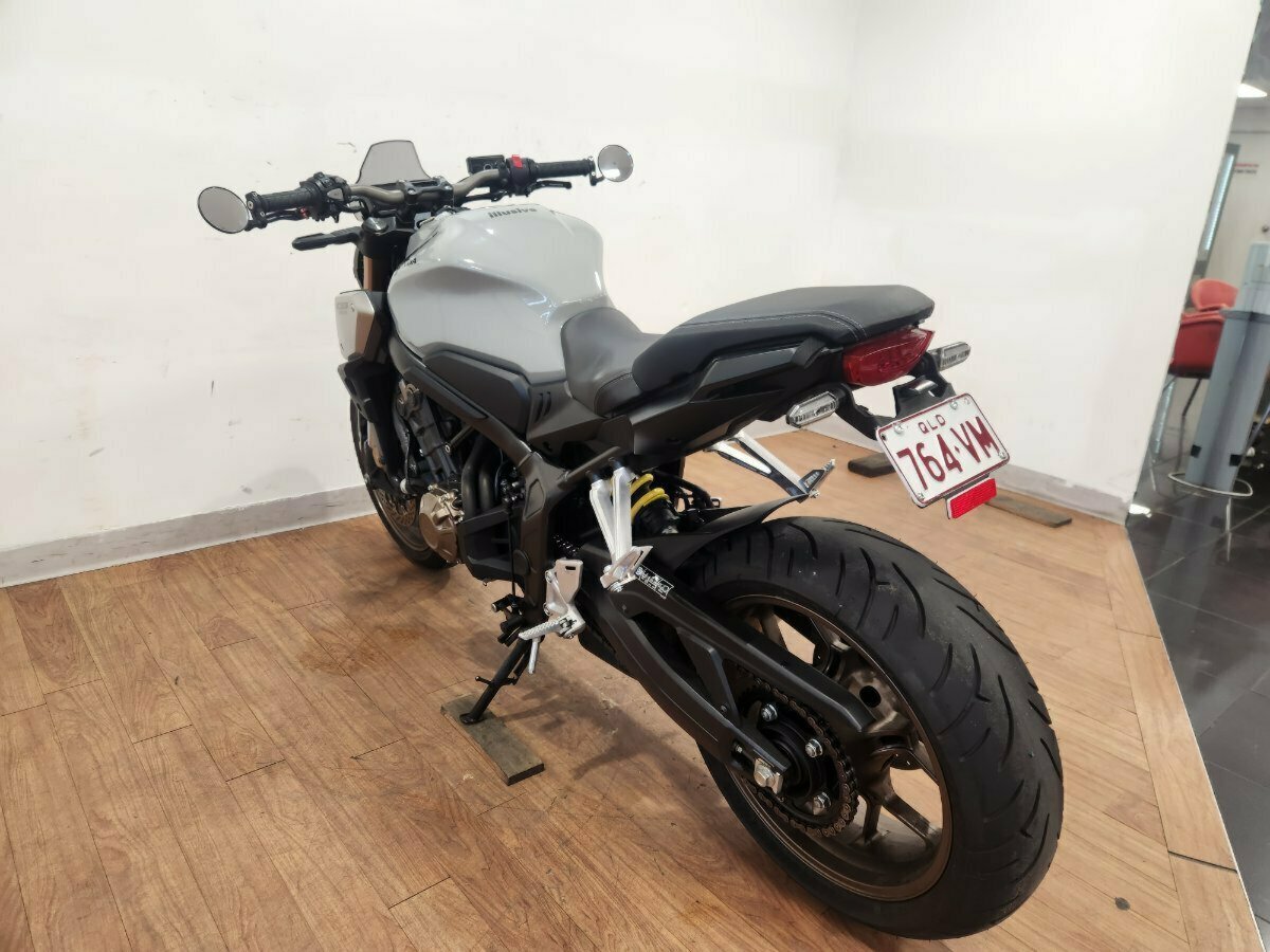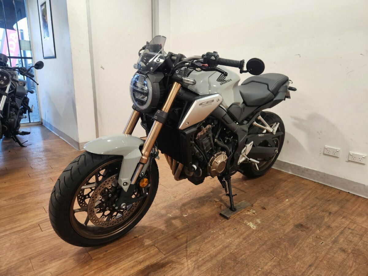 2021 Honda CB650R LAMS. One owner with full history, rego until May 2024, and its immaculate.^^Looking sharp in super rare and desirable Pearl Smokey Grey colour option, with a tail tidy, fly screen and bar end mirrors, and adjustable levers too.^^Bets looking CB650R on this website!!!^^With up to a 3 year mechanical protection plan and the most competitive finance and insurance packages available, as Australias largest motorcycle retailer no one makes it easier to purchase a Learner Approved Motorcycle. ^^Plus we can organise to have your bike delivered directly to your door anywhere in Australia through our dedicated motorcycle freighters. Why buy elsewhere?