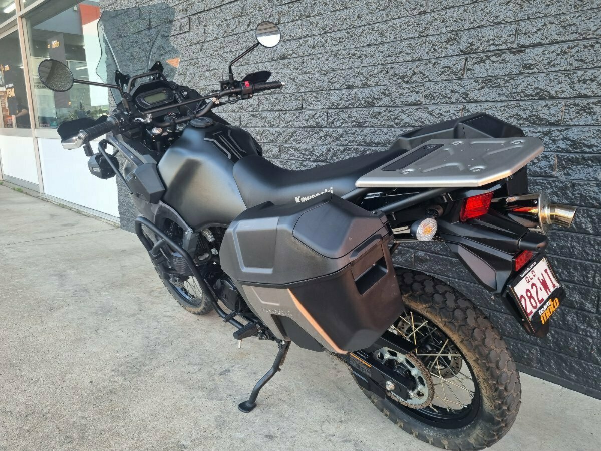 2021 KLR 650 Adventure^^LAMS LAMS LAMS^^The KLR 650 is the tried and tested adventure King. With its robust and simple design it has won the hearts and minds of many - and this example is a prime reason as to why. ^^Coming now standard with Fuel Injection and ABS it has brought it into the modern age, without being weighed down by a host of unnecessary electronics - that could fail on the trail. The plush seat, makes days in the saddle easy. The ergonomic triangle has been optimised to be suitable for every shape and size and if its not quite right, it couldn't be easier to customise with things like bar risers, foot pegs etc.^^With the integrated crash bars, Barbuster JET handguards and spotlights up front and the Genuine Panniers and luggage tray at the rear, it has all the basics covered and is ready for you to put your personal touch onto it. Set it up for hard-core off road riding and single trail; or tone it down and turn it into a highway cruiser that can still take a road less travelled - or anything in between. That is the beauty of this bike that has super low kms and has not been modified heavily like so many other KLR's out there.^^Will you make this blank canvas your own?^With a 3 year mechanical protection plan and the most competitive finance and insurance packages available, as Australia?s largest motorcycle retailer no one makes it easier and there is no better place to buy a Learner Approved Motorcycle. Plus we can organise to have your bike delivered directly to your door anywhere in Australia through our dedicated motorcycle freighters. This Approved Used Bike comes with a 49-Point Quality Inspection, 2-Day FREE Exchange and 90 Day Mechanical Protection Plan extension when you purchase a 3 year plan. Ensuring peace of mind, ease & convenience. An Approved Used Bike is the best choice in Australia for your next bike.^Why buy elsewhere?