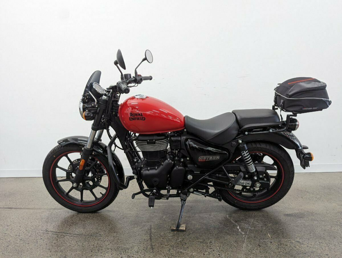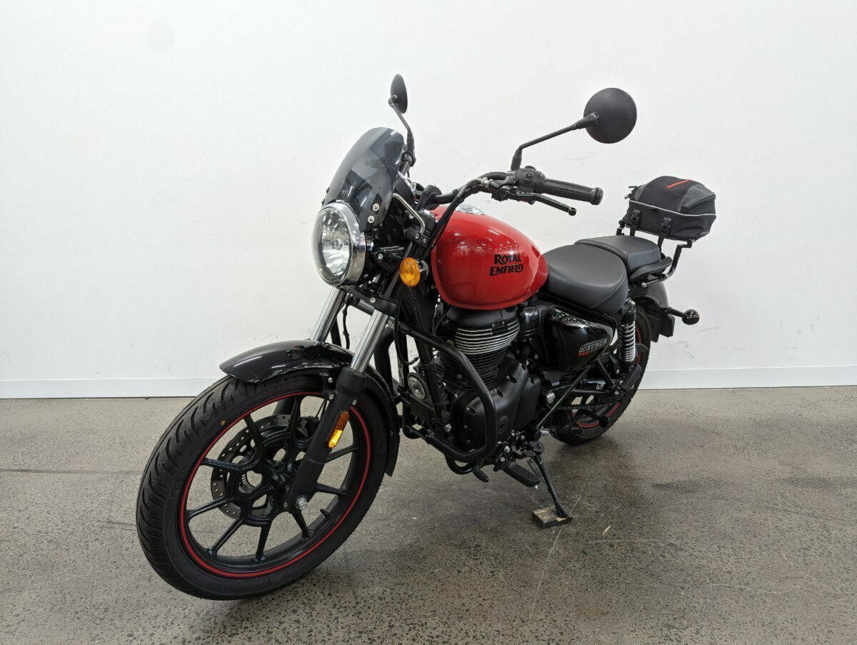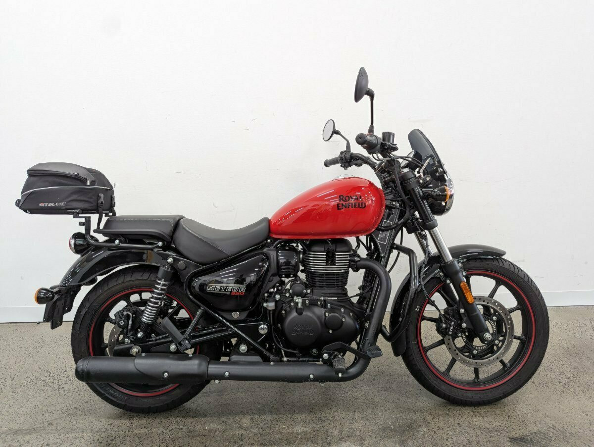2022 Royal Enfield Meteor in Fireball Red. Only 2400km^This LAMS-approved gem is practically new, boasting a sleek design and fiery performance. Featuring a small front screen for added comfort, adjustable levers for a personalized touch, and a rear rack with an Adventura bag to carry all your essentials^^FIVE REASONS WHY A TEAMMOTO APPROVED USED BIKE IS A BETTER BIKE! ***** Up to 3 Year Warranty ***** 2 Day Free Exchange ***** 49 Point Mechanical Inspection ***** Competitive Finance and Insurance packages available ***** Australia Wide Freight Service