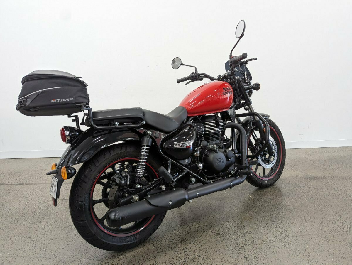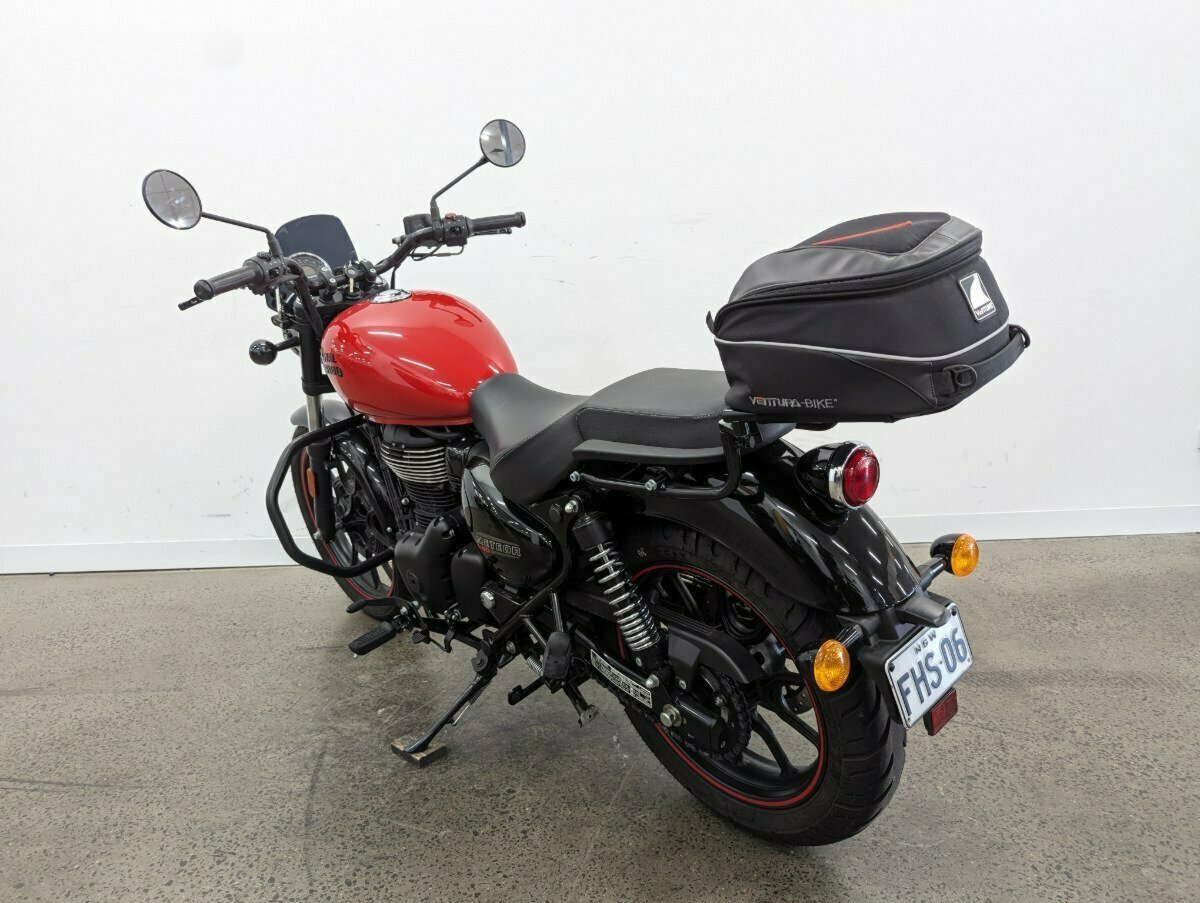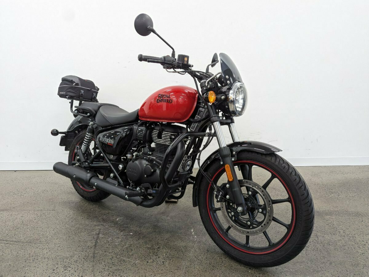 2022 Royal Enfield Meteor in Fireball Red. Only 2400km^This LAMS-approved gem is practically new, boasting a sleek design and fiery performance. Featuring a small front screen for added comfort, adjustable levers for a personalized touch, and a rear rack with an Adventura bag to carry all your essentials^^FIVE REASONS WHY A TEAMMOTO APPROVED USED BIKE IS A BETTER BIKE! ***** Up to 3 Year Warranty ***** 2 Day Free Exchange ***** 49 Point Mechanical Inspection ***** Competitive Finance and Insurance packages available ***** Australia Wide Freight Service