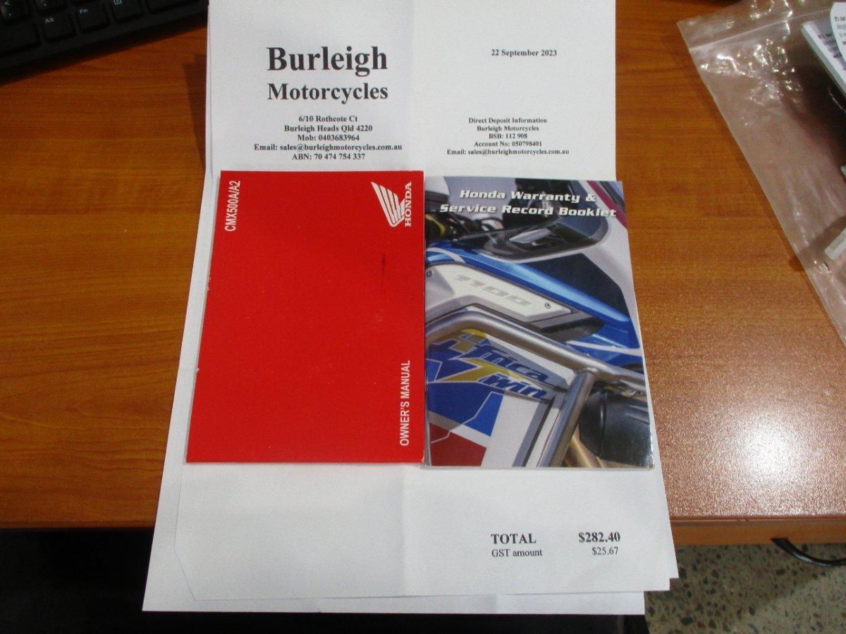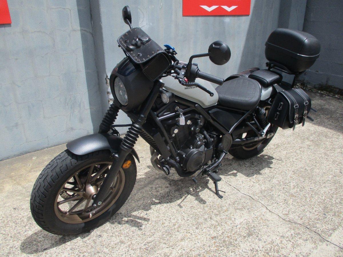 2023 Honda CMX500 in Grey. 1 owner comes with owner's manual, two keys! Set up with all the mods from a S model including headlight cowl black out forks, diamond stitched seat with Vance and Hines exhaust, Saddle bags, top box, aftermarket levers, quad lock and OEM exhaust and seat. This one has been workshop inspect and is ready to go! One of the best LAMS cruisers on the market, easy to ride light, agile with a low seat height and the safety of ABS. One of Hondas most popular Lams bikes and the most popular colour in the range! This one won't hang around. Get in today and see for yourself. With the option for a 3-year parts and labour Mechanical Protection Plan with any Approved Used bike, a 49-point inspection, there is no better place to buy a Learner Approved Motorcycle. So, take advantage of our competitive pricing and the largest range of Plus we can organise to have your bike delivered directly to your door anywhere in Australia through our dedicated motorcycle freighters. An Approved Used Bike is the best choice in Australia for your next bike. Why buy elsewhere?