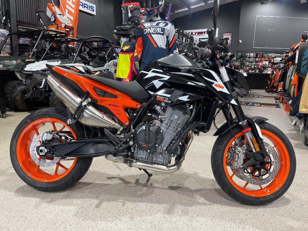 2023 KTM 890 Duke GP, the expression of naked aggression and razor-sharp precision. Designed to dominate both the street and the track, this middleweight powerhouse takes everything great about the 890 Duke and wraps it in GP-inspired style.^^? Key Features:^^889cc Parallel Twin Engine ? Punchy torque, explosive acceleration, and class-leading power-to-weight ratio.^^GP-Styled Bodywork ? Sleek, aggressive graphics and race-ready looks that turn heads wherever you ride.^^Lightweight Chassis ? Agile, flickable, and confidence-inspiring through corners or tight urban streets.^^Adjustable WP APEX Suspension ? Tuned for responsiveness whether you're carving canyons or hitting the circuit.^^Advanced Electronics ? Ride modes, cornering ABS, traction control, and optional Quickshifter+ for a seamless riding experience.