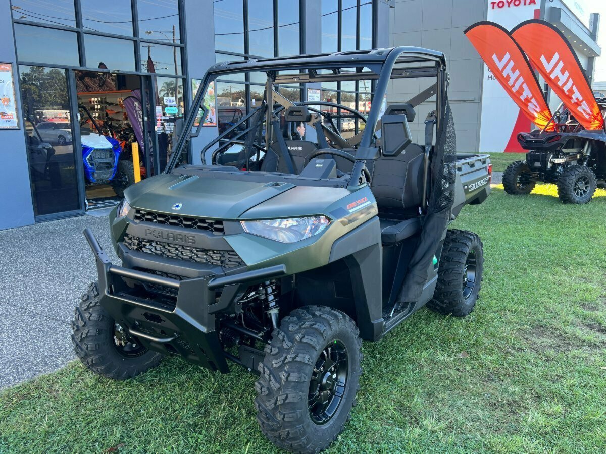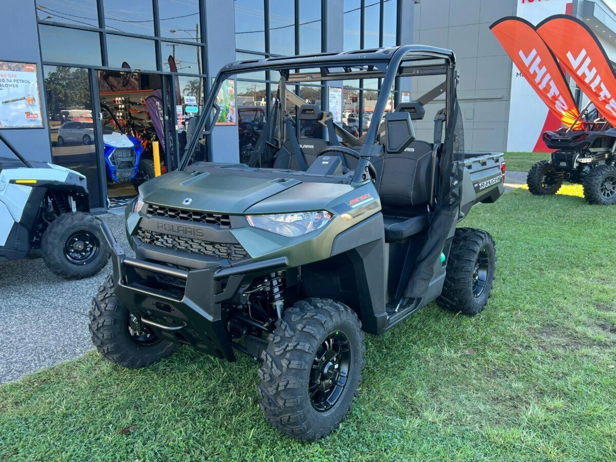 Just 2 Left in stock. Selling Fast. FREE Local Delivery.^^2023 Polaris 900CC RANGER DIESEL HD EPS ATV^^YOU GET FREE ACCESSORIES, Find out by calling.^^YES WE CAN DELIVER^^Ranger Diesel HD, Active Descent Control, Kubota 3 Cylinder Diesel. ON DEMAND TRUE All Wheel Drive, 2 Wheel Drive and Versatrac TURF MODE^The New Diesel boasts new HD Features including UPGRADED Rear Driveshafts, Grease Nipples, HD Sway Bar, Sealed Suspension Bushings, Sealed Ball Joints and Driveshaft Spline Seals.^^The RANGER Diesel is tougher and more reliable than ever.^140 Amps Charging System^65 kmph Top Speed^1134 kg Towing Capacity^720 kg Payload Capacity^2.5 cm DEEPER BOX^43.5 L^True On-Demand AWD EPS, EBS, ADC^Digital Gauge^Thicker Seat Cushioning - Added 2.5 cm of padding^More Leg Room for Getting In/Out^17% More Storage - 2 Glove Boxes and 6 Cup Holders^Flip-Up Passenger Seat^33 cm Ground Clearance. 27' Tyres. 27.9 cm Usable Travel.^The RANGER Diesel is tougher and more reliable than ever.^33 cm Ground Clearance. 27' Tyres. 27.9 cm Usable Travel.^^We can Provide competitive finance and insurance packages available, as Australia?s largest motorcycle retailer, no one makes it easier to purchase a Ultimate Motorcycle. Plus, we can organise to have your bike delivered directly to your door anywhere in Australia through our dedicated motorcycle freighters. An Ultimate Motorbikes is the best choice in Australia Why buy elsewhere? ^WE WANT YOUR TRADE INS.^We will get you the fairest possible trade values.^Just honest advice and great service with QLDs best deals. ^Ride away price includes all offers, cash backs, rebates and discounts, and is not offered in conjunction with any other specials, offers or promotions.