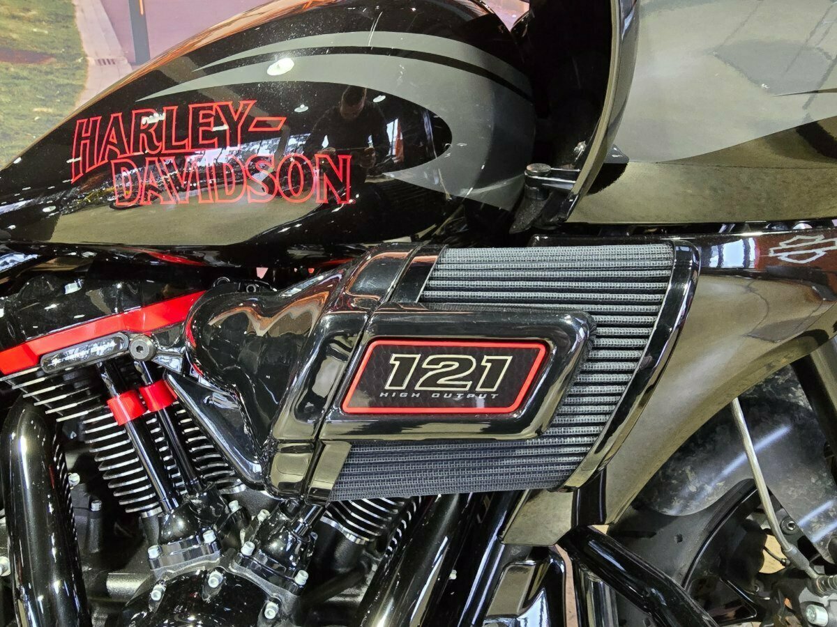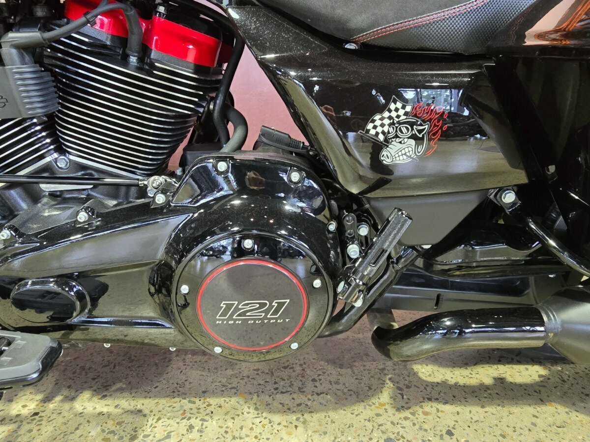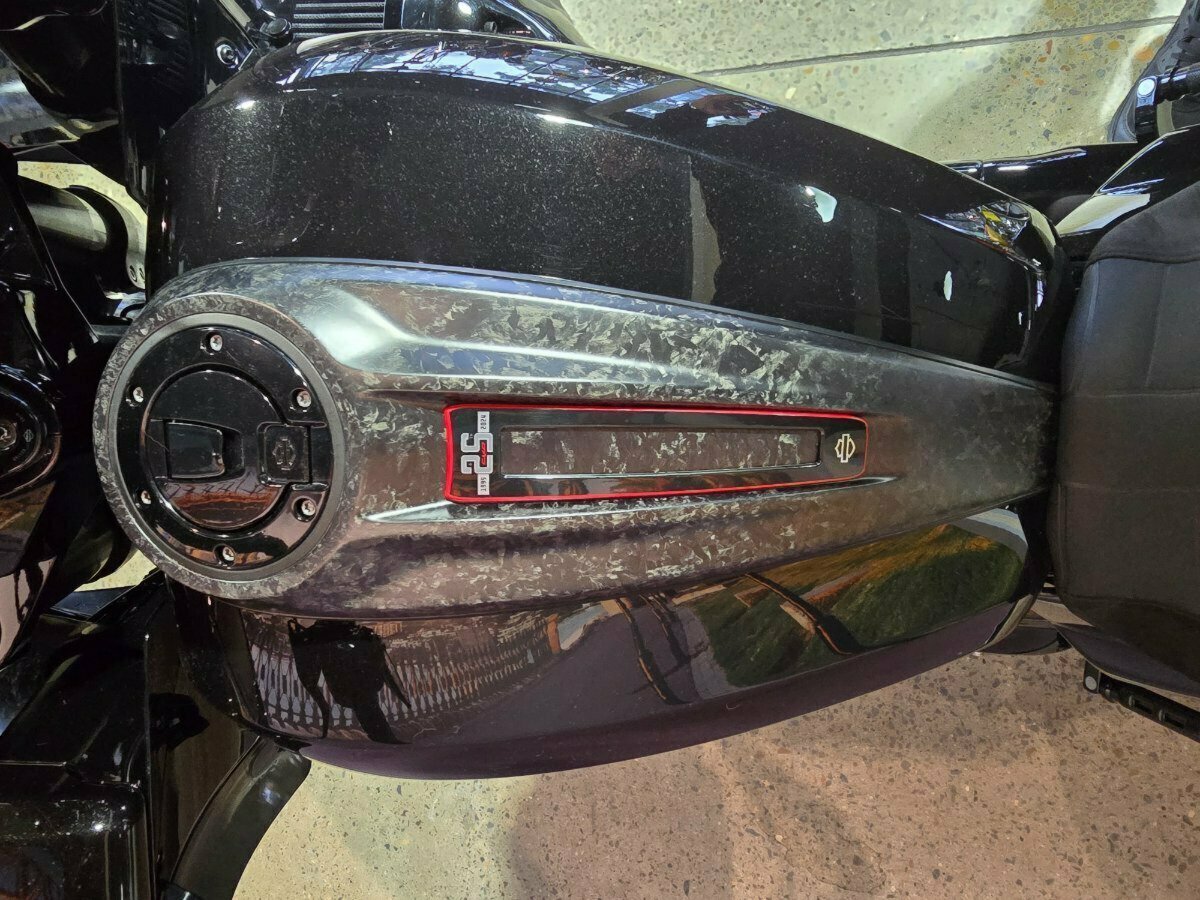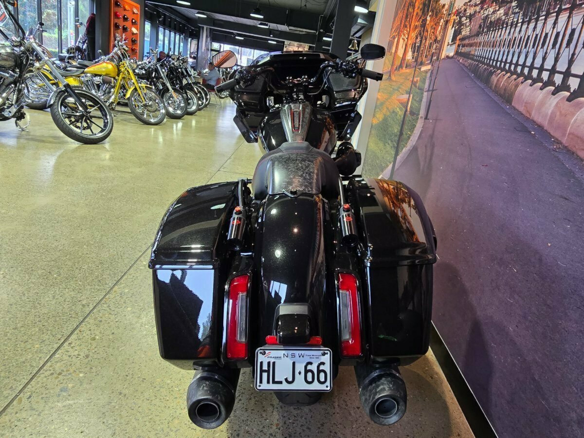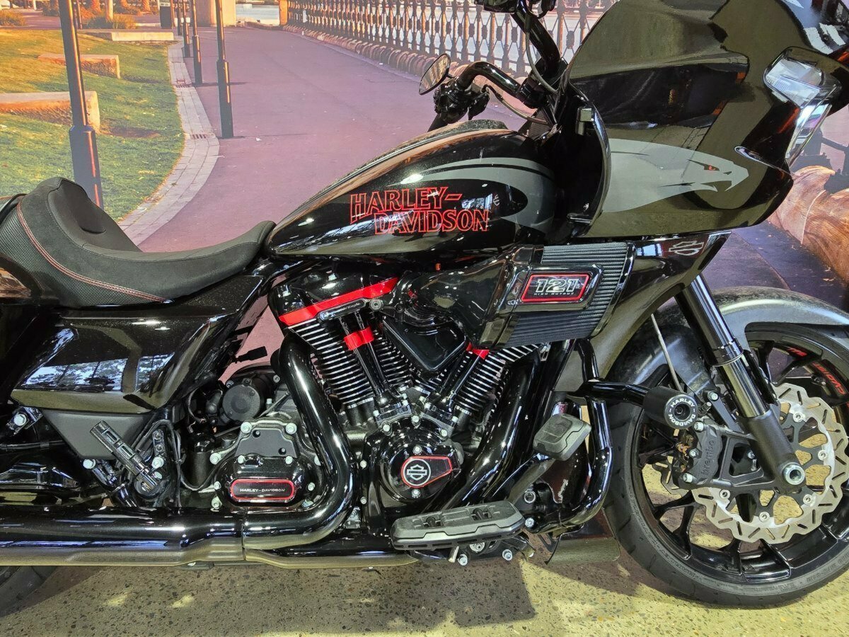 Look what has just arrived. This Pre Loved 2024 Harley-Davidson CVO Road Glide ST 121 celebrating the 25th anniversary of Custom Vehicle Operation with a host of exceptional features and design elements. Finished in the captivating Raven Metallic paint scheme and adorned with special 25th-anniversary commemorative badging, this motorcycle exudes exclusivity, performance and style. Enhanced aerodynamics are achieved through a redesign of the fairing and saddlebags, ensuring improved stability and reduced wind resistance for a more comfortable ride. The signature LED lighting not only enhances visibility but also adds a modern touch to the motorcycle's appearance, with integrated turn signals for added convenience and safety. Underneath its striking exterior, the CVO Road Glide ST 121 is powered by the new Milwaukee-Eight 121 powertrain, delivering outstanding performance, torque, and responsiveness. Complementing the powertrain are Combo Cast Laced wheels, which blend classic aesthetics with modern performance, further elevating the motorcycle's overall appeal. Riders can indulge in a premium audio experience with the Rockford Fosgate Stage II Premium Audio System, while staying connected and entertained through the impressive suite of infotainment features and Ride Modes accessible via the Skyline OS and a 12.3-inch TFT touchscreen display. Engineering advancements such as weight savings, Brembo brakes, and inverted front forks contribute to improved handling, braking performance, and overall agility, making the CVO Road Glide 121 Harley-Davidson's most advanced Grand American Touring motorcycle yet. In summary, the 2024 Harley-Davidson CVO Road Glide ST 121 is a testament to Harley-Davidson's commitment to innovation and excellence, offering riders an unparalleled sport touring experience with its blend of performance, comfort, and cutting-edge technology.