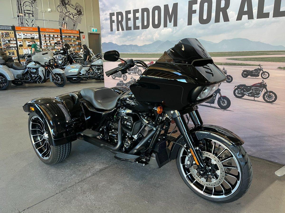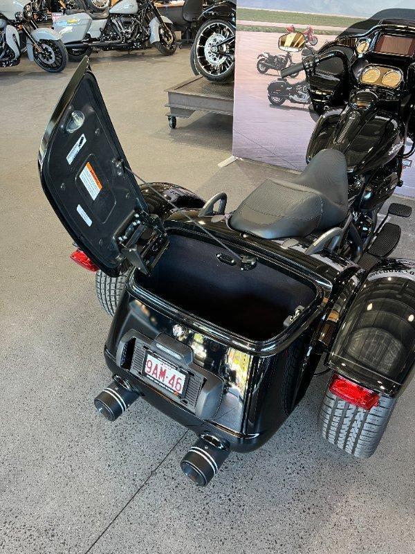 CLEARANCE STOCK!! 2024 HD Road Glide 3 Trike 114ci Milwaukee in Vivid Black on Black with an ULTRA LOW 1537 KMS! FACTORY WARRANTY TO MARCH 2026. 1600 kms First Service Complete. Suit the NEW BUYER! Save thousands on HD's Hot Rod weapon with COBRA Mufflers all the latest on board technology including maps, GPS, Bluetooth and live Engine Summaries. Blackened Turbine Rims with the Black Out Trim looks pure class on the road with the protection of that aggressive front Road Glide Fairing. Test Ride today!!^Call our store today and ask about the super competitive Harley-Davidson Finance options we have through multiple Financial Institutions available to us. Our dealership is located 5 minutes off the Bruce Highway and 10 minutes from the Airport, making it the ultimate store to visit for a for test ride to fly in then take delivery of your next Harley-Davidson. With instore finance, insurance and extended warranty options we are truly a one stop shop. Customising your next bike is another one of our specialties with an experienced Accessories & Parts Experts waiting to personalise your dream machine. Alternatively, we can arrange to have your bike delivered directly to your door or area, anywhere in Australia through our preferred motorcycle freighters (New Bikes excluded unless prior instore delivery). Our Harley Davidson Dealership has a fantastic range of new models and a broad range of Certified HD Pre-Owned bikes on offer, come and check them out. We have bikes to suit all riders and budgets. Trade ins accepted on ALL motorcycles, vehicles, caravans and Water Craft.