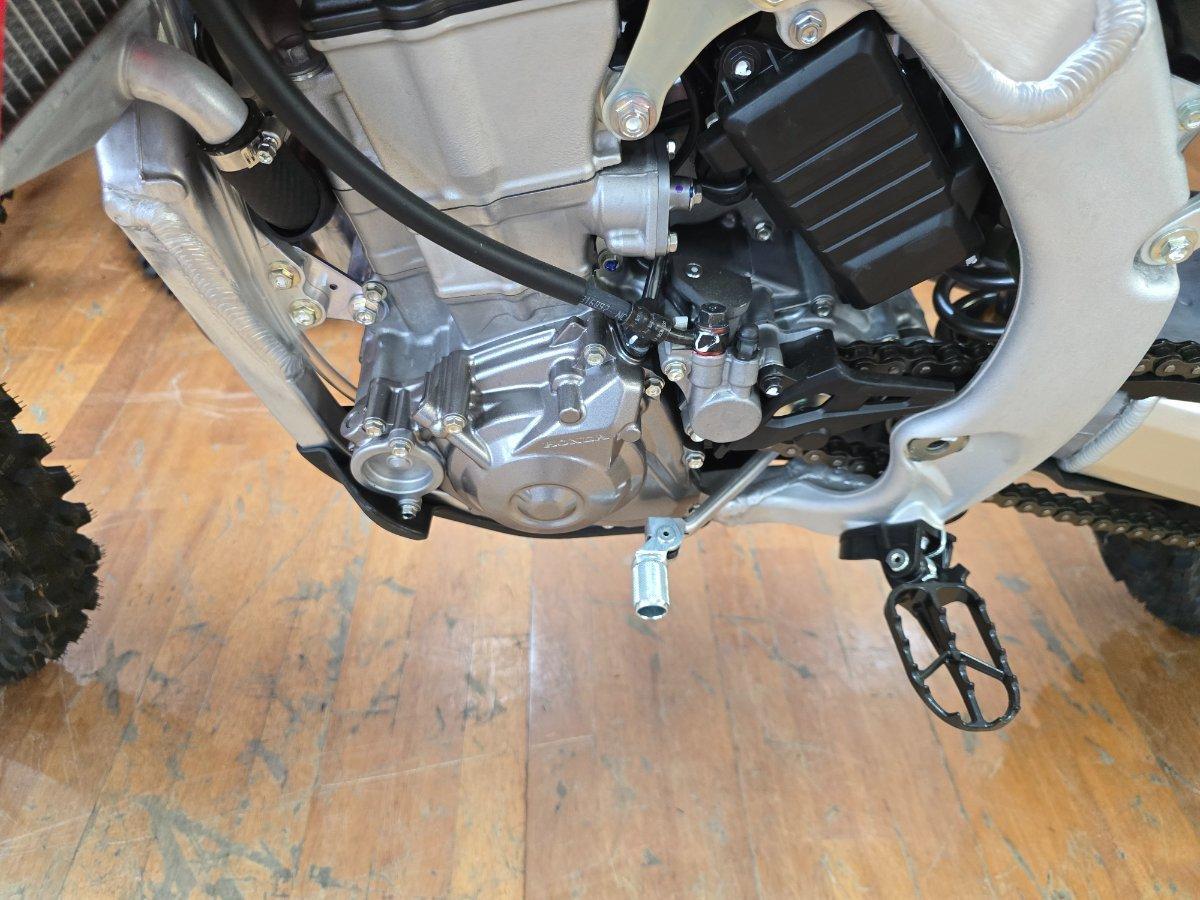end of year clear out ^^2025 Honda CRF450R^^Superior handling starts with an exceptional frame. The updated chassis features optimised rigidity and reduces weight, while enhancing responsiveness and stability.^^Suspension^The new frame design on the CRF450R leaves room for a specialised rear shock. The shock?s valving resets fast for better response and handling on any terrain.^^Triple Clamps^New top and bottom triple clamps work with the new frame, revised fork, new front axle and new steering stem for a more consistent suspension feel throughout the stroke.^^Front Brake Caliper^The updated piston and seals provide reliable braking performance for precision and control throughout every ride. Now complete with new machined accents.^^^instore finace insurance and mechanical protection plan available