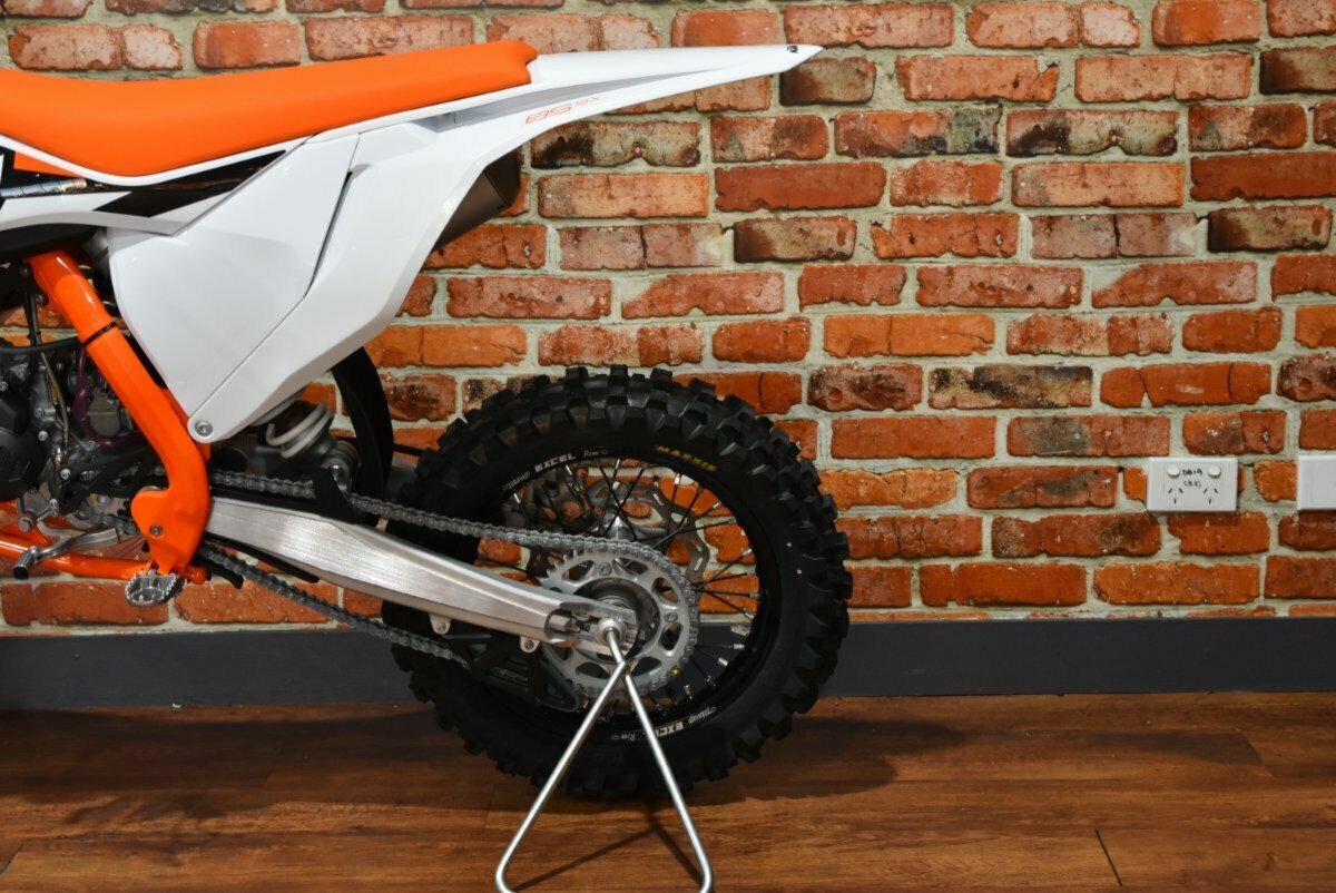 Get ahead of the competition with the 2024 KTM 85SX Large Wheel. Engineered for young riders with big ambitions, this new model offers championship-winning performance in a compact package. With its powerful 85cc engine and race-proven chassis, it delivers exceptional agility and control on the track. Featuring larger wheels for added stability, the 85SX Small Wheel inspires confidence in every corner. Start your journey to the podium today.^^With up to a 3 year mechanical protection plan and the most competitive finance and insurance packages available, as Australia?s largest motorcycle retailer no one makes it easier to purchase a Motorcycle. Plus we can organise to have your bike delivered directly to your door anywhere in Australia through our dedicated motorcycle freighters. Why buy elsewhere?