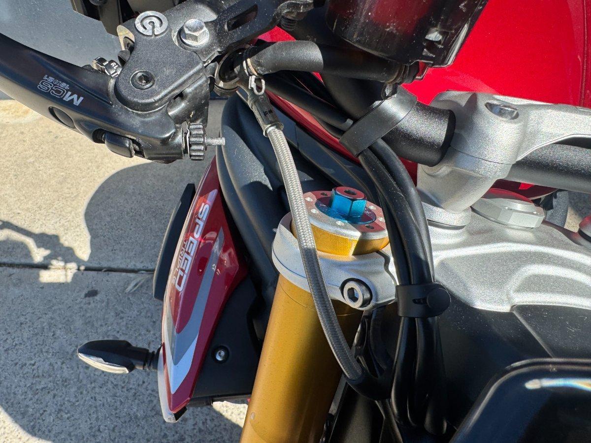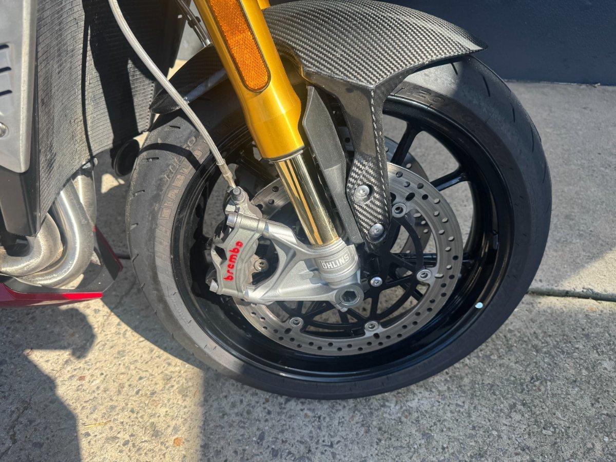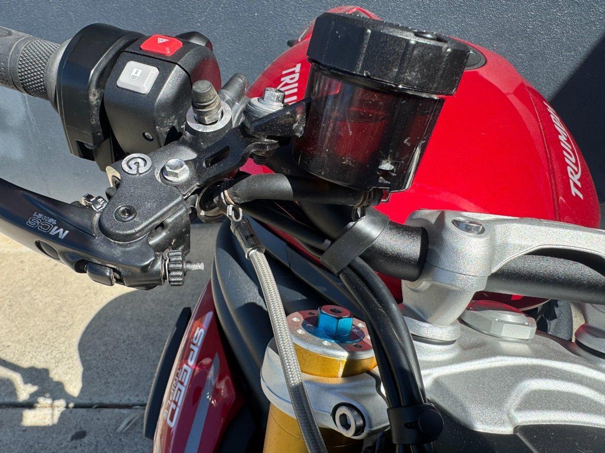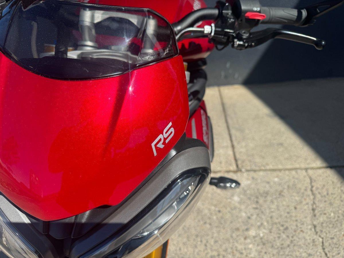 This 2024 Triumph Speed Triple 1200 RS is the ultimate streetfighter fast, sharp, and built for riders who want performance without compromise.^^ fitted with a ^^1,160cc Triple-Cylinder Engine 177 HP of raw, usable power^^SC Project Exhaust (installed) ? Deep, aggressive tone + weight savings + performance gain^^Ohlins Suspension (Front & Rear) ? Fully adjustable, track-ready precision^^Brembo Stylema Brakes Race-spec stopping power^^TFT Dash w/ Connectivity Full-color display with rider modes, lap timer, phone integration^^Quickshifter Up/Down Seamless clutchless shifts ^^Rider Modes & Lean-Sensitive Electronics Traction Control, ABS, Wheelie Control, Cornering ABS^^ and sounds incredible and turns heads.