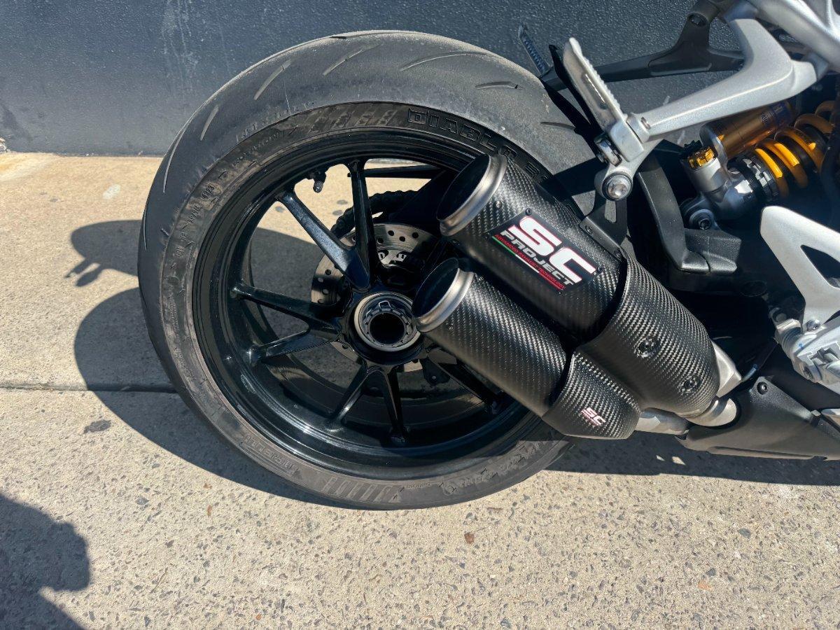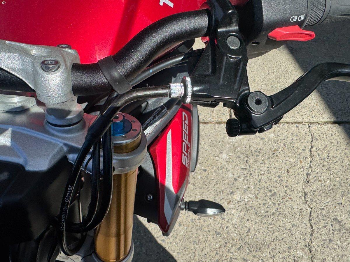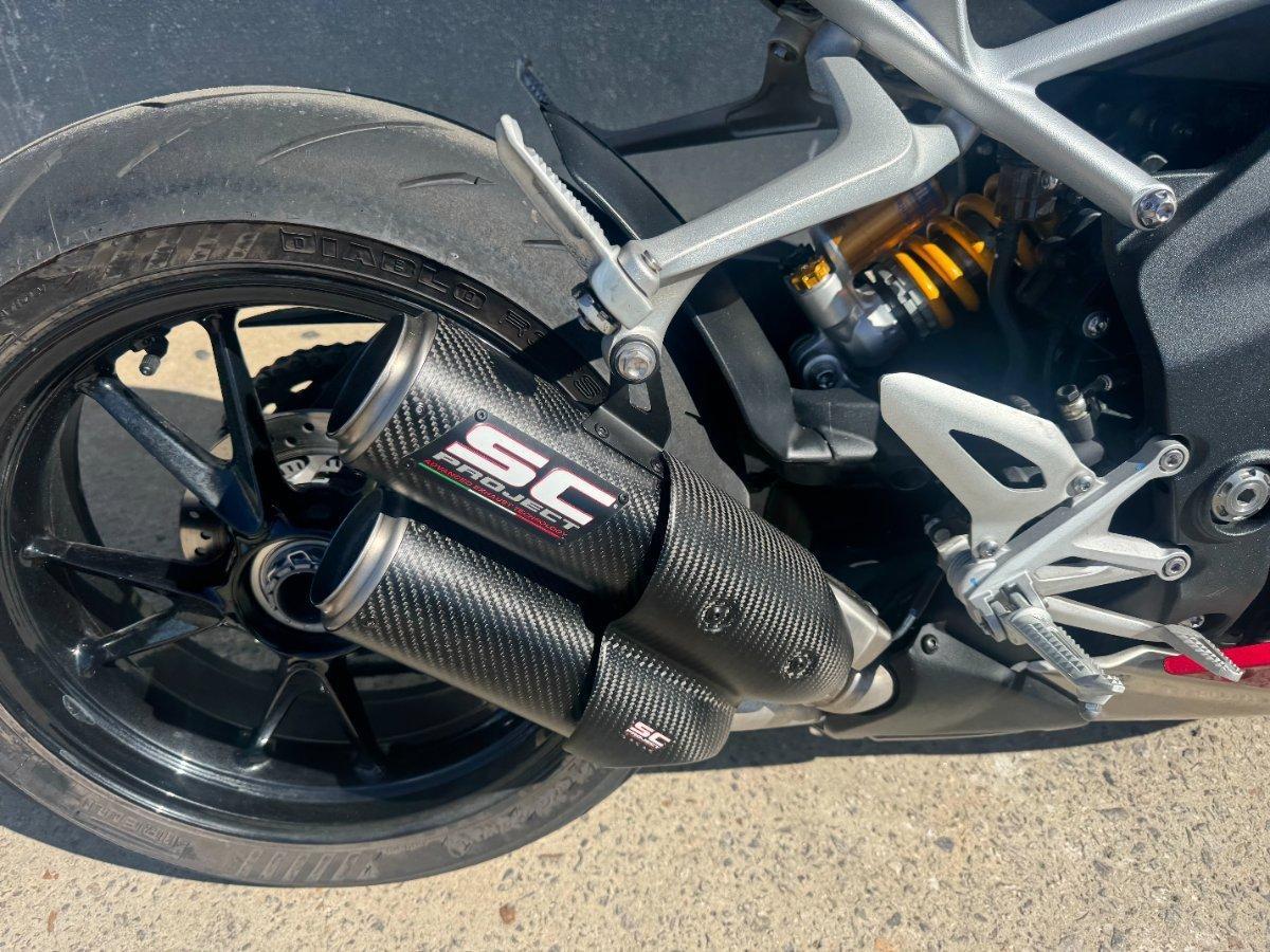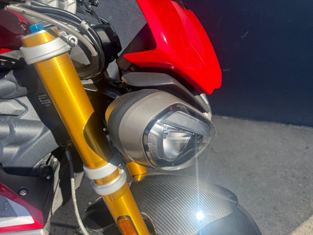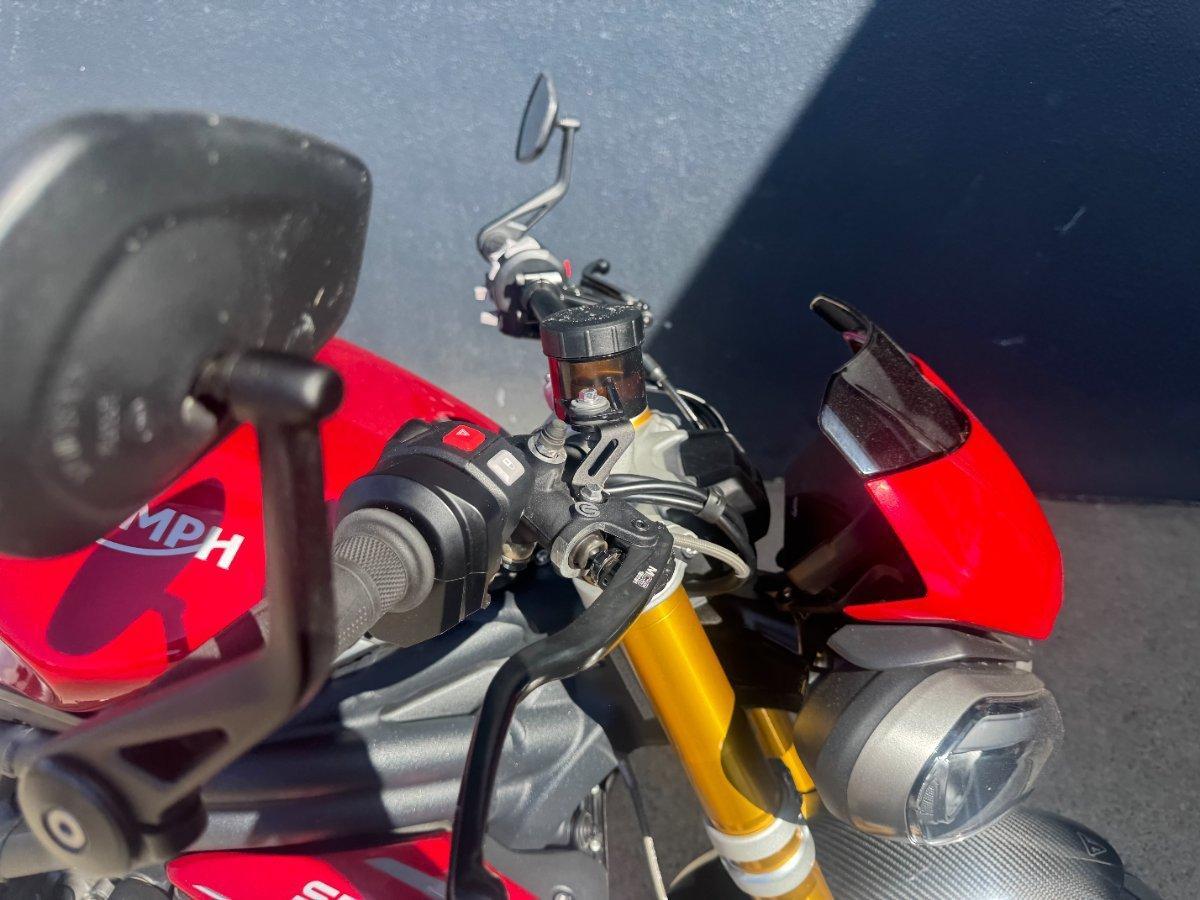 This 2024 Triumph Speed Triple 1200 RS is the ultimate streetfighter fast, sharp, and built for riders who want performance without compromise.^^ fitted with a ^^1,160cc Triple-Cylinder Engine 177 HP of raw, usable power^^SC Project Exhaust (installed) ? Deep, aggressive tone + weight savings + performance gain^^Ohlins Suspension (Front & Rear) ? Fully adjustable, track-ready precision^^Brembo Stylema Brakes Race-spec stopping power^^TFT Dash w/ Connectivity Full-color display with rider modes, lap timer, phone integration^^Quickshifter Up/Down Seamless clutchless shifts ^^Rider Modes & Lean-Sensitive Electronics Traction Control, ABS, Wheelie Control, Cornering ABS^^ and sounds incredible and turns heads.