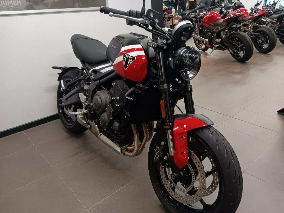 LAMS APPROVED^^New Trident 660 ^Exhilarating performance and handling, unique retro-modern styling, best-in-class rider-focused technology and Triumph?s renowned premium build quality and component specification. ^^The Trident 660 makes every ride seriously fun.^^A class-leading level of technology to enhance your ride, now fitted as standard. Featuring 3 riding modes including an exciting new Sports riding mode, Cruise Control, Optimised Cornering ABS and Traction Control, plus Triumph Shift Assist for clutch-less up and down gear changes. Bluetooth connectivity adds turn-by-turn navigation and full phone functionality to deliver unrivalled levels of rider convenience.