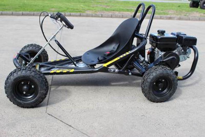 6.5HP PETROL OFF ROAD GOKART. Pull start, air cooled, disc brake, 6” tyres, 3.6lt tank, direct drive, centrifugal clutch, maximum load 110kgs. #001