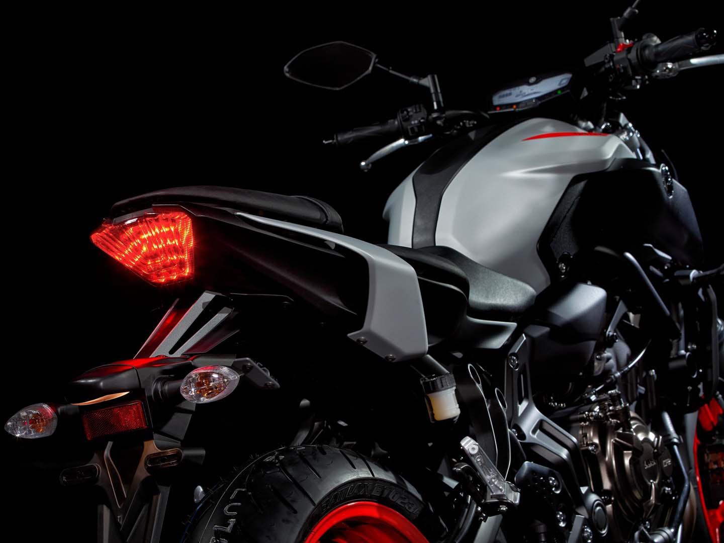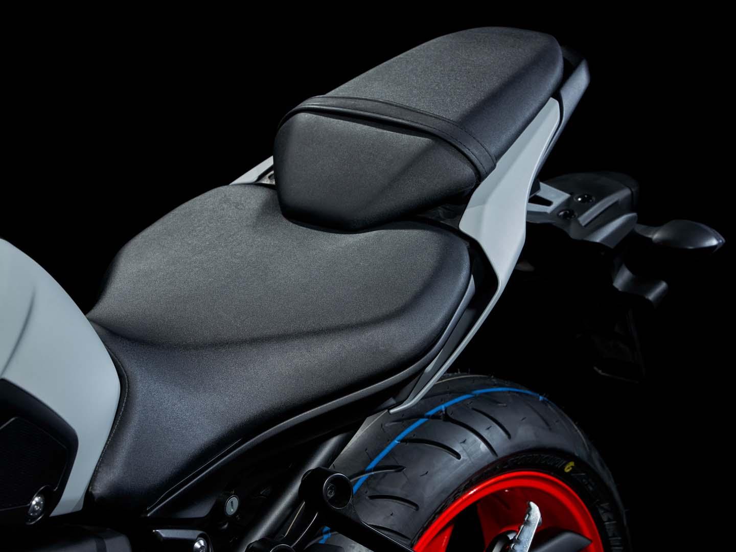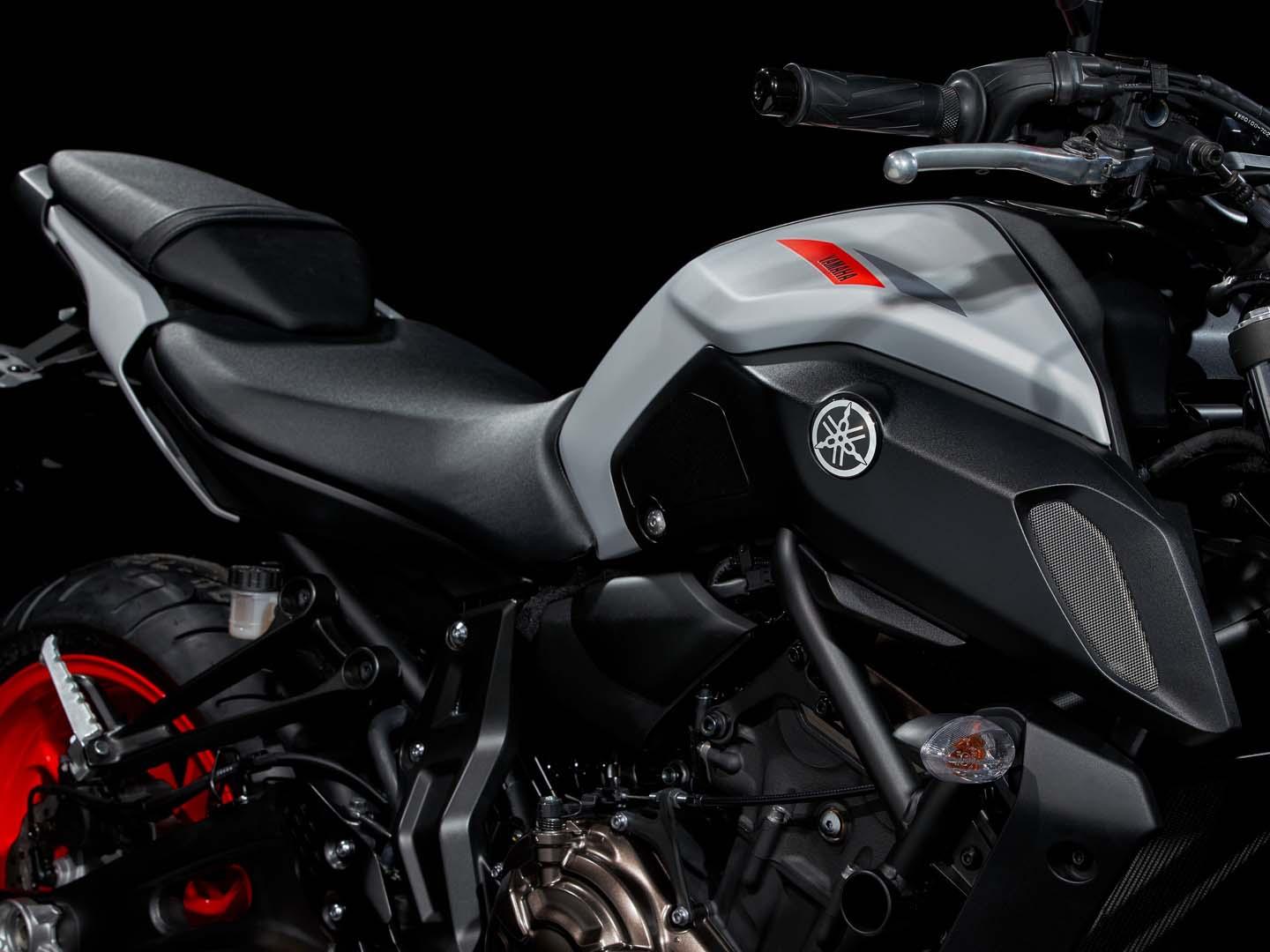 Revised on the MY18 model, the MT-07LA’s seat has an organic look and wraps around the base of the fuel tank for both aesthetic and practical appeal. It not only looks good but encourages a more “connected” feeling on the bike, too.